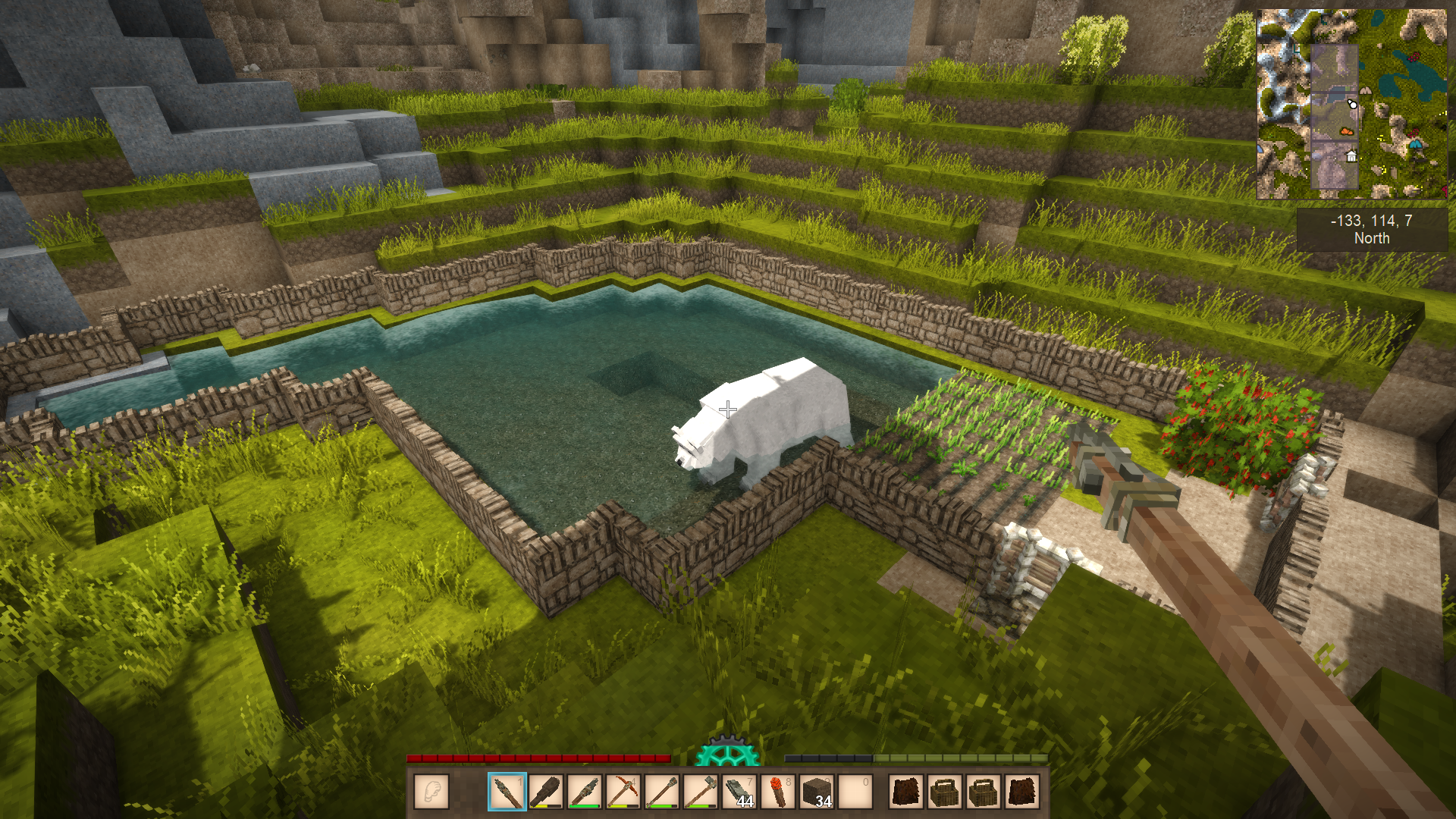 Bossman Posted June 11, 2023 Report Posted June 11, 2023 I found out that the rabbits are willing to swim through the pond I'm using to irrigate my farmland, so I fenced off the whole thing. I came back later to see if it worked... Good news: no rabbits in the farm. Bad news: something worse in the farm: OK, I guess a bear could jump in from those slopes. But a polar bear? This isn't far from my spawn and it's late spring/early summer. I haven't even seen snow yet. Production note: the bear was slaughtered and its 19 bushmeat, 3 fat and huge hide were enjoyed by the crew. 1