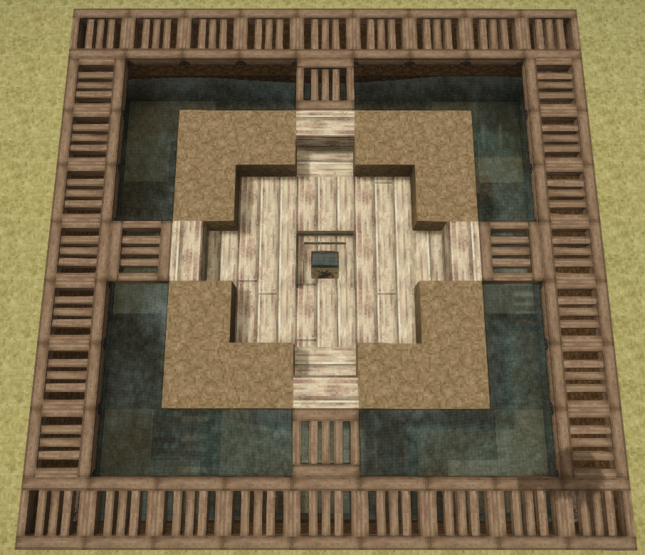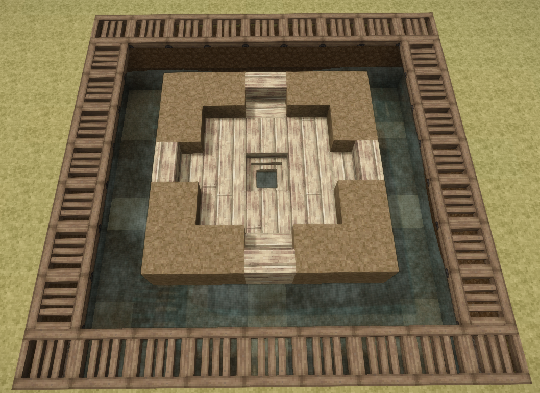 Chickon_20 Posted February 27, 2024 Report Posted February 27, 2024 (edited) This is a Guide on how to build an easy and cheap killbox / bunker (I designed it myself). You are required to at least have access to copper tools already. (I´m not really experienced at posting stuff online and English is also not my main language, so please correct me if I make any mistakes) Building Materials You´ll need: ~ a Stack of any solid building blocks 9 slabs of any kind 4 stairs of any kind 4 ladders of any kind 36 trapdoors 4 doors (1*2 of any kind) 1 dry grass 4 firewood a bucket of water some storage (any storage will work) Tools You´ll need: a hammer a chisel a shovel (for digging dirt) an axe for breaking misplaced trapdoors and doors tools for breaking the building materials (in case you misplace them) Building it First, dig a 9*9*3 hole (you may need to flatten the terrain around it). (the packed dirt is just for illustration) Build a fire pit in the middle. Fill the corners with water (on the with packed dirt marked spots). Place ladders in all four corners (exactly like in the picture below). Build a 5*5 ring out of the building block you´ve chosen at the same height level as the terrain around the pit. Replace 4 of the building blocks with stairs (like in the image). Fill in the empty space with slabs (facing downward). Carve of a layer of the middle slab using the 4*4*4 chisel brush. Carve a hole into the middle using the 4*4*4 chisel brush. Carve of parts of the inner edge using the 2*2*2 chisel brush. You need to place trapdoors (it will make drifters and other think that they can walk onto that space). First, place two parallel rows of trapdoors, which face sideways from the trapdoors (so you don´t get stuck on them). Add two more parallel rows. Place trapdoors at the stairs, each facing the stair they´re placed at. Fold down the trapdoors. Place doors on each of the stairs. Build a 2 block high wall out of the building block you´ve chosen. Build a roof out of the building block you´ve chosen. Add storage. Add necessities. You´re done building it! Now it´s ready to use! How to use it Just get in when the temporal storm starts and fuel up the campfire (through the hole). To cut up the drifters corpses, sit down right next to the hole and cut them up (through the hole). You can also use it catch wolfs and bears and cook! That´s it! Please leave a review if you have any questions or issues. Edited February 28, 2024 by Chickon_20 I finished it! 23 3 1 3