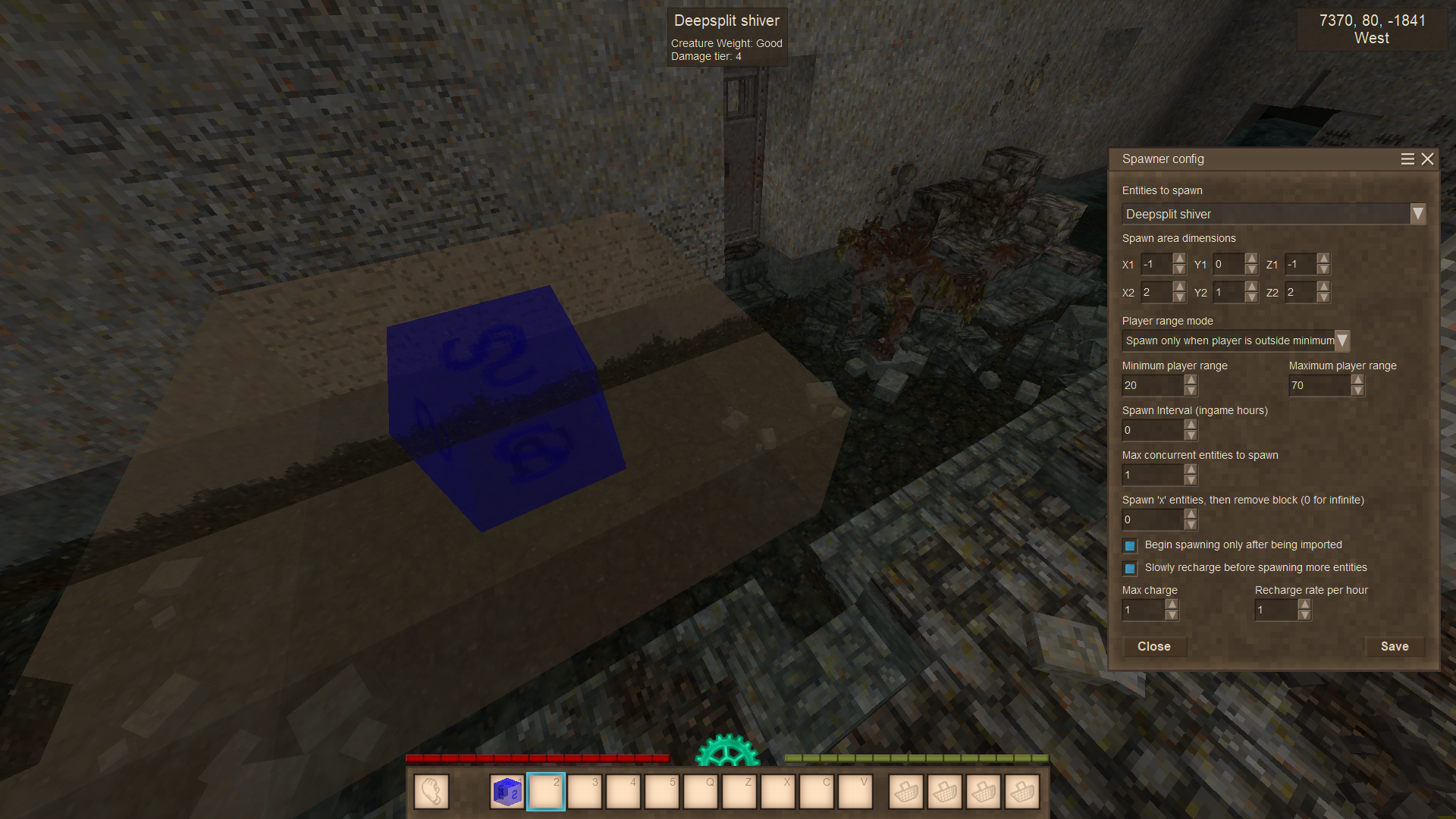 MKMoose Posted January 1 Report Posted January 1 (edited) 3 hours ago, LadyWYT said: I'm certain that I've seen more than one of those special enemies in a storm, though I would note that only one of each seems to exist at any given time. That is, you can encounter a deepslit shiver and a double-headed drifter at the same time, but not two of the same at once. However, the chances of getting more than one per storm in singleplayer are rather low, and the chances of seeing two specials at once lower than that. As for the chances of getting more than two per storm...I don't think that's even possible in the vanilla game. Yeah, that seems consistent with the source code, appreciate it. 3 hours ago, LadyWYT said: The special shiver [...] is actually a deepslit shiver. 3 hours ago, LadyWYT said: After seeing that code snippet though I'm going to need to pay more attention to what those shivers are labeled as in the game. I swear the nameplate says "deepslit", but if they're marked as "deepsplit" in the code then perhaps there's a typo that needs reporting. Just checked, I probably just misremembered something with that stilt shiver. And I'm pretty sure that the other one is consistently referred to as "deepsplit" everywhere. Though "deepslit" admittedly rolls of the tongue better, I think "deepsplit" makes a lot of sense if you compare its appearance with other shivers. Name and spawner in the story location in the screenshot below, but for appearance comparison I'd recommend just jumping into creative and spawning a few shivers. Spoiler 3 hours ago, LadyWYT said: It's a very large area, and capable of spawning tier 3 enemies at least. I don't recall seeing any nightmare enemies or special monsters there, but I wouldn't rule it out either. Additional spawns for this area are implemented mainly in this method, if you're interested, and the JSON data is in assets/survival/config/mobextraspawns.json (alongside storm spawns), so I don't think a gearfoot can be found there. We have Vintage Story's bigfoot now, it seems. Spoiler devastationAreaSpawns: { quantities: { drifter: 1, shiver: 2, bowtorn: 2, }, variantGroups: { drifter: ["drifter-tainted", "drifter-corrupt"], shiver: ["shiver-tainted", "shiver-corrupt"], bowtorn: ["bowtorn-tainted", "bowtorn-corrupt"] }, } 6 hours ago, LadyWYT said: As for finding Jonas parts, I would still consider temporal storms the better method to obtain them rather than the underground, simply because it's much easier to fight in the open spaces on the surface than it is in the cramped underground conditions. Jonas parts in general, I think, are supposed to be rather difficult to come by regardless of how one obtains them. I would disagree that finding Jonas components underground is less optimal. Sure, combat may be more difficult (I don't know if I even agree with that, to be honest), but at least you can find more than two rare spawns per storm. Either way, while I can appreciate that they are supposed to be difficult to come by, it is also worth mentioning that: low drop rates tend to encourage tedious grinding and cheesing, people don't complain about the drop rates too much probably because a lot of Jonas components can be found in story locations to kickstart the collection process and sometimes provide all the components that the player may be looking for, and they just aren't particularly useful as of now, any consumable items risk being completely impractical with drop rates this low - the base return teleporter takes 8 Jonas components, not even counting the other resources, which would take 10 storms assuming the very optimistic 0.8 average, and assuming you only get the components you need, which would be a frankly somewhat absurd investment even if the reward was much better. While they aren't a priority as of now, I think they will have to be adjusted in some ways whenever more Jonas tech gets added. Edited January 1 by MKMoose 1