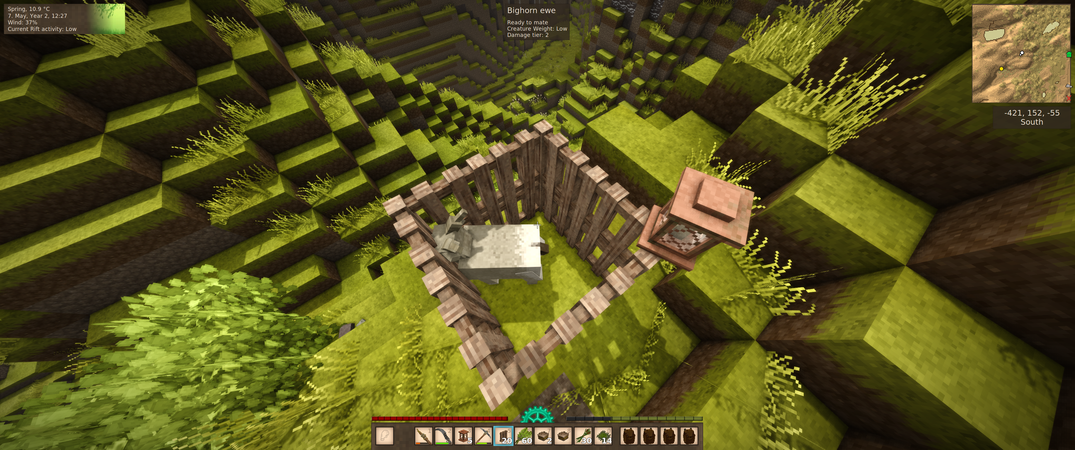 you were right!! funny, I went up those mountains yesterday looking for sheep (no luck) but I went again on your suggestion and found a ewe! now I just need to bring it over to my base. I'm thinking I'll make a corridor of 2-tall fences and incrementally move it down the tube, blocking its reversal with more fences. Any suggestions to smooth this process out?