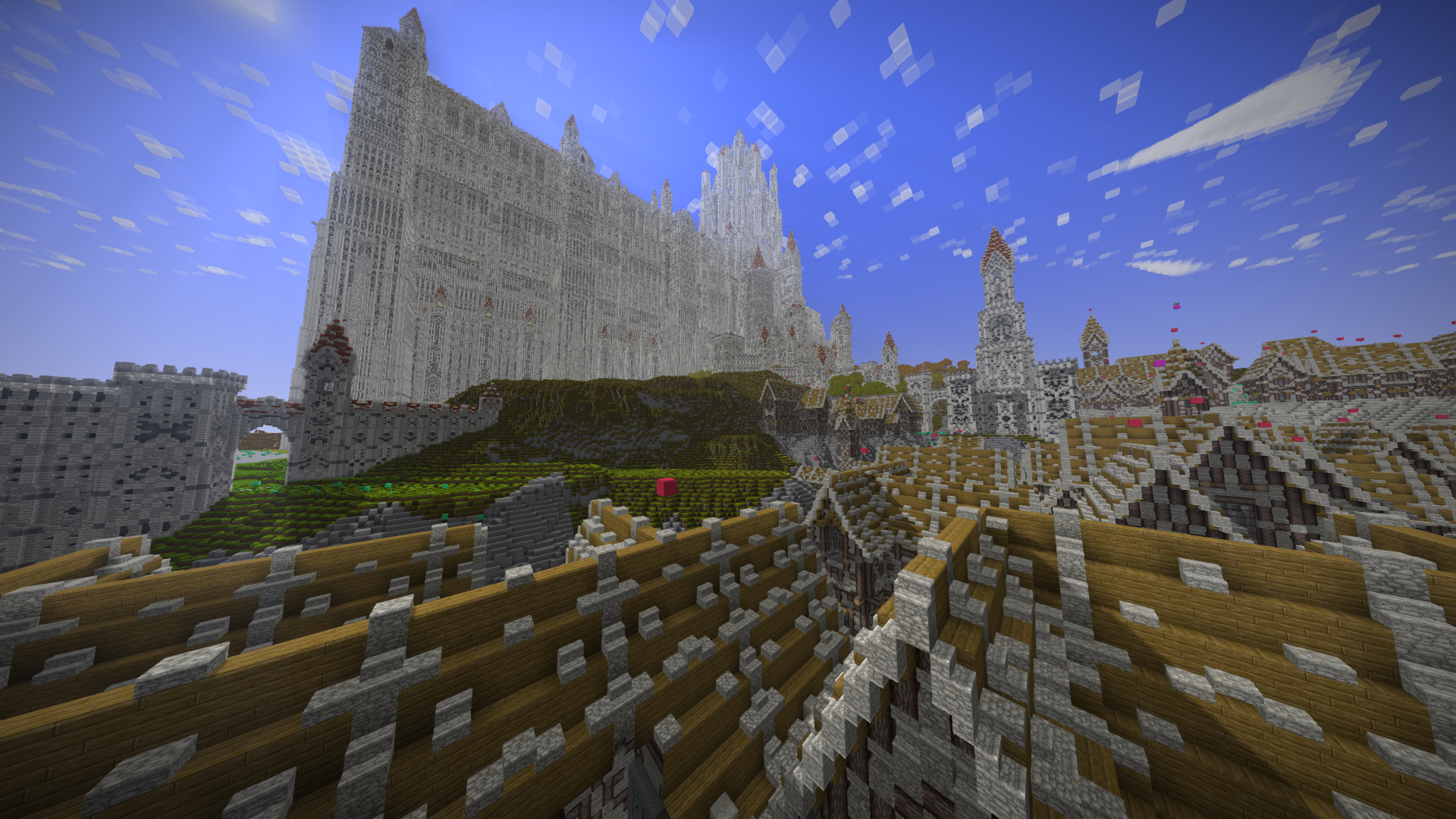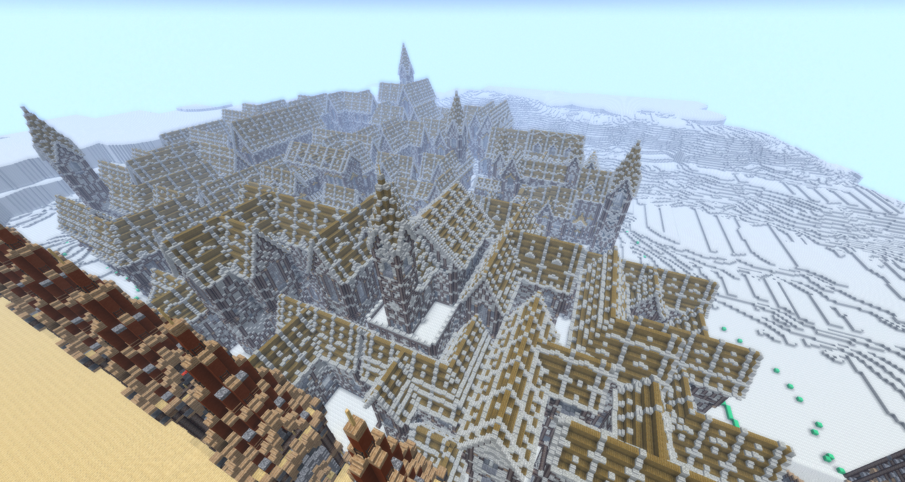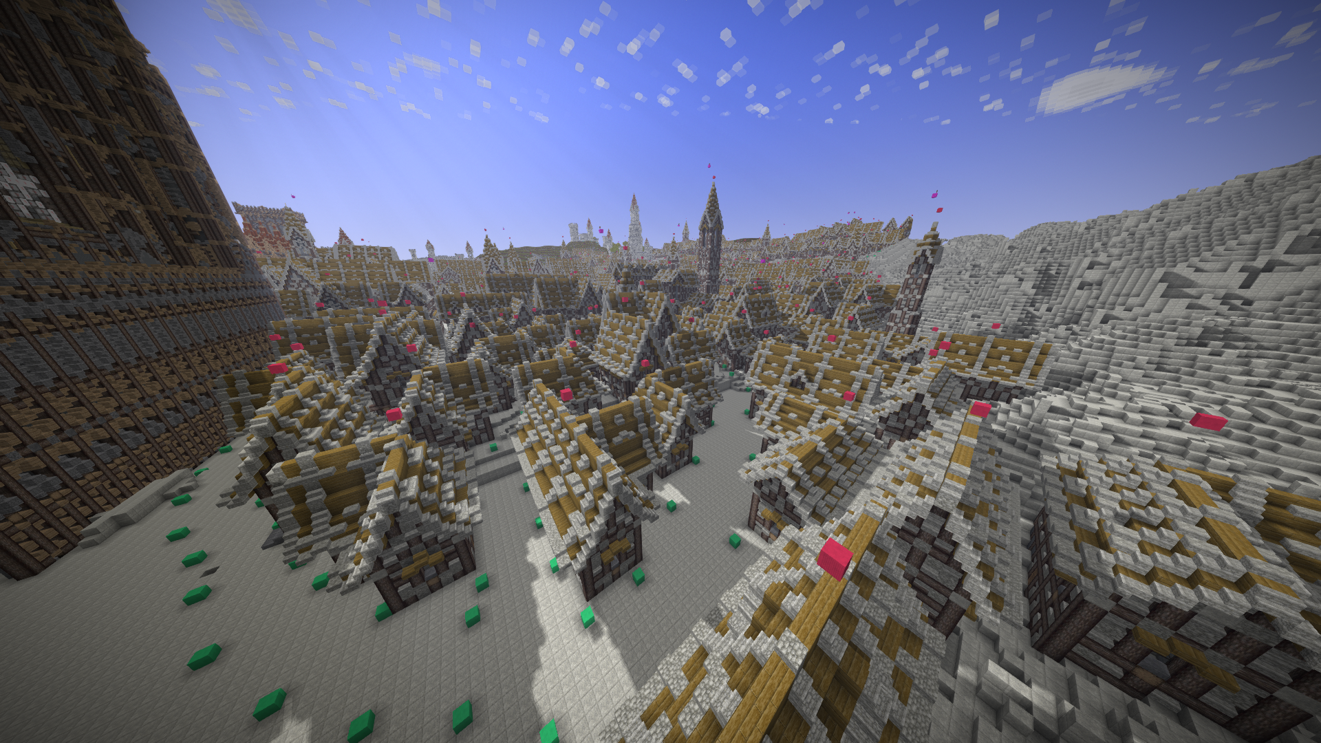 UmbraCreations Posted April 6, 2017 Author Report Posted April 6, 2017 A quick update Since the team is now active again i feel like i have no choice but to update on my progress as well. As you can see on maxumim view distance, it is not possible anymore to see the entire city from one end to the other. Of course this looks very "grey" and boring right now but im still building the basic structures and soon i will progress with finishing one small block to it's final state so you guys can see how it could possibly look like in the end. The red blocks on top of the buildings are just for counting and of course as a help to quickly see which building is finished with exterior and interior design. at least 12 more "blocks" will be added until the end and of course the next agenda would be building the front city wall and the castle right after finishing the next few blocks left. I think the next update will be posted in between a week and more will come quite quickly after. Progress is slow but im still good in time for this huge project. Greetings from Germany, ~Chris PS: I love the new crates introduced with the last version. Amazing! It's gonna be so useful for decoration etc..