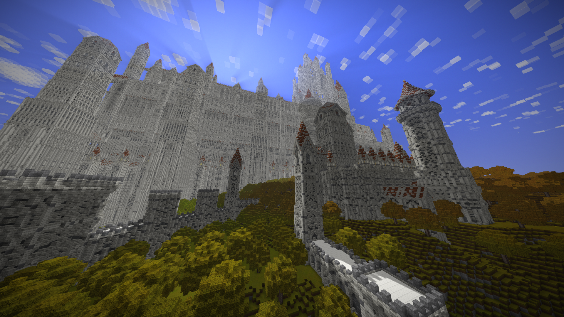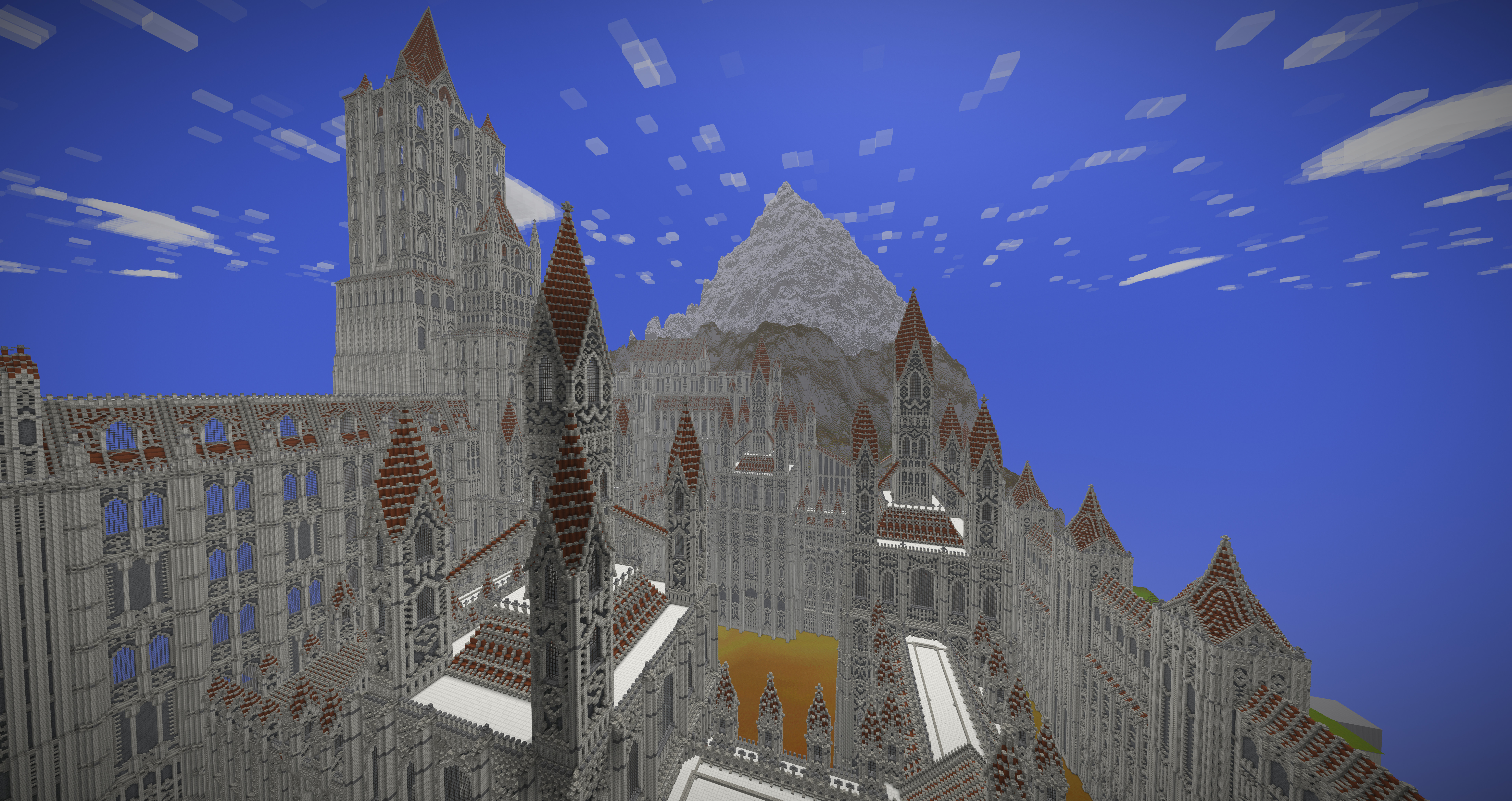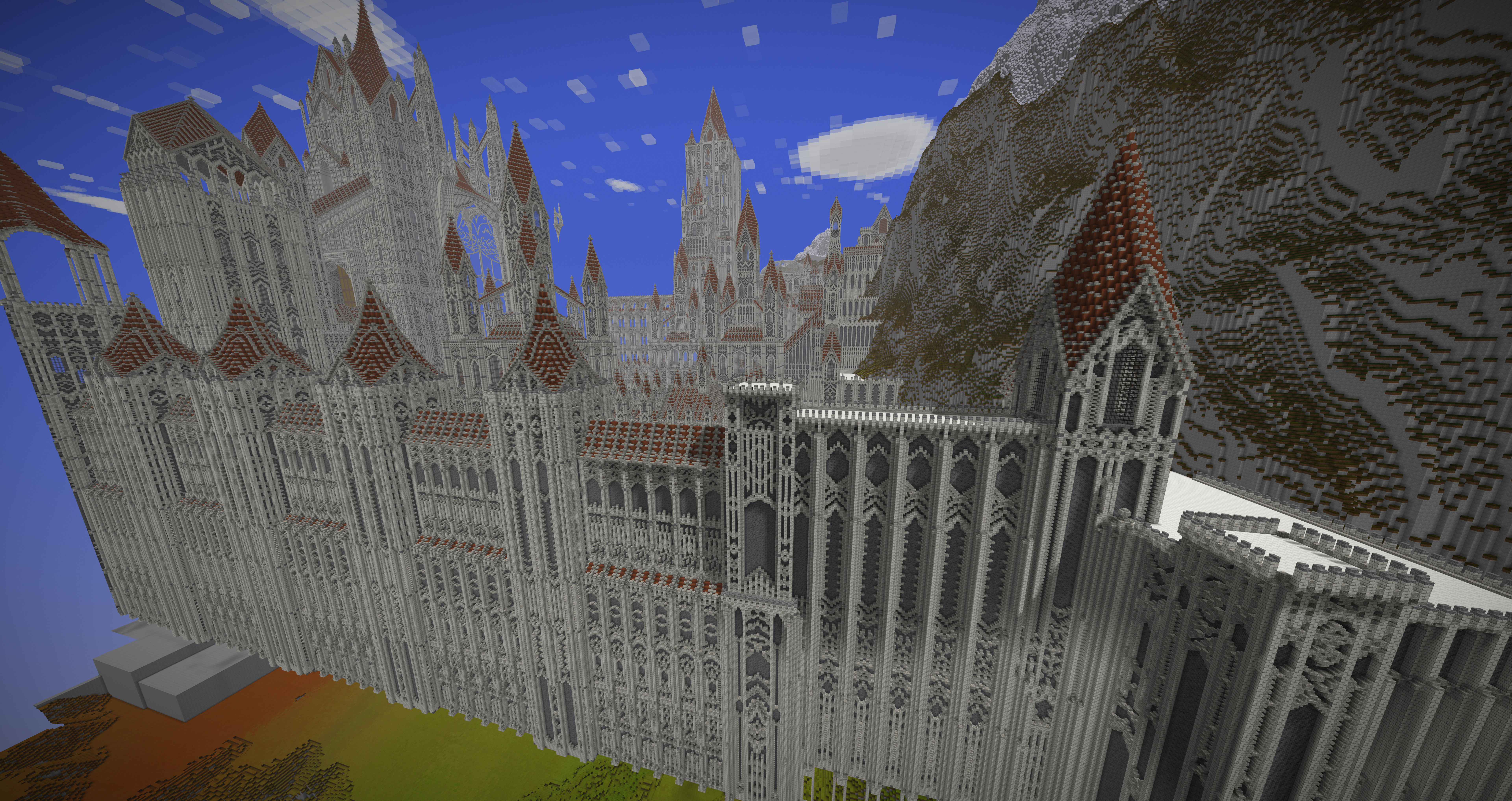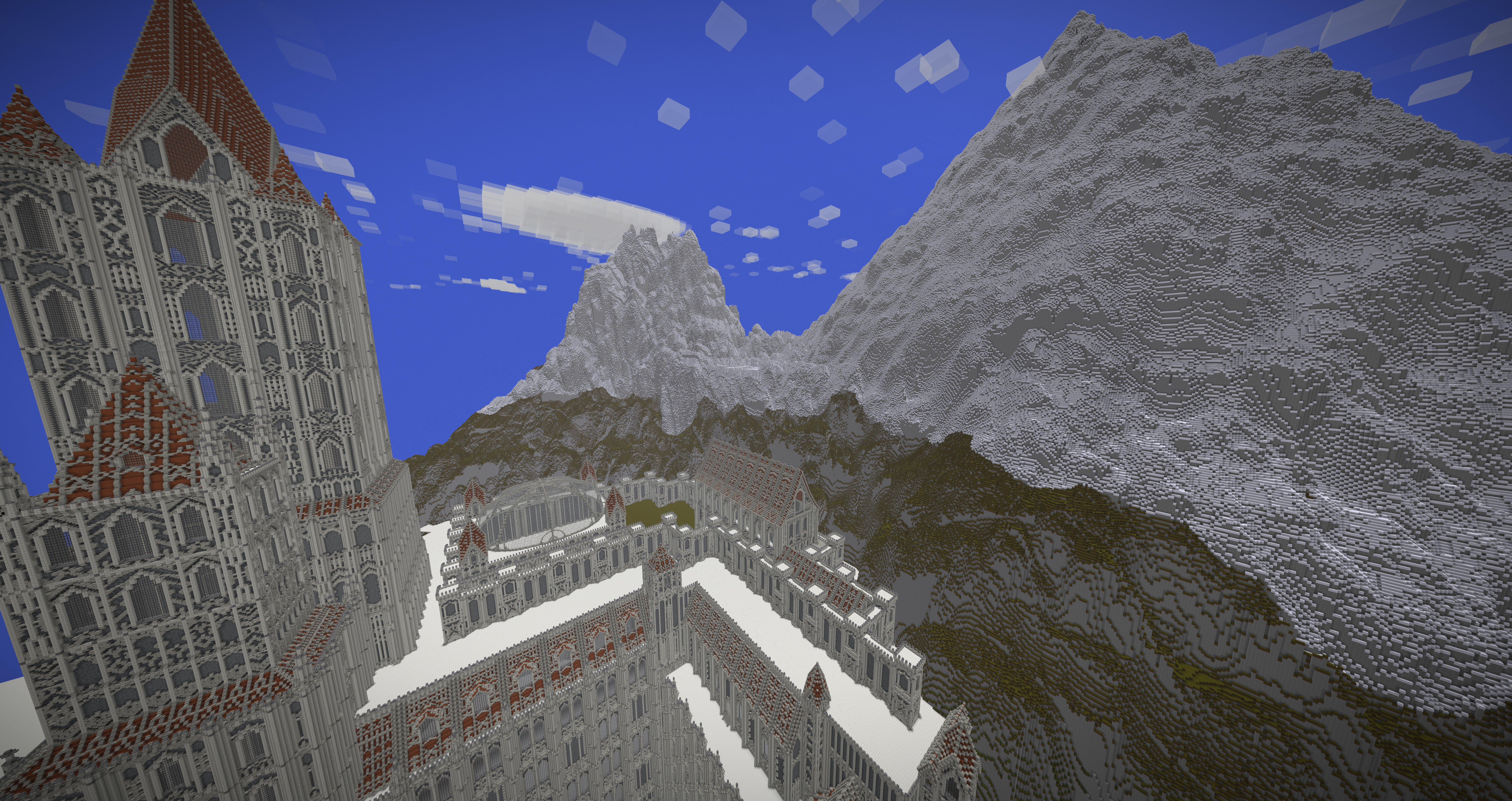 UmbraCreations Posted July 21, 2017 Author Report Posted July 21, 2017 Make LUXEMBRA great again! Sorry to make you all wait so long. I've been having a few breaks from the game but i always went back to it with slow progress. Right now i've been working on a part of the castle and of course i went completely crazy again, like always! Reaching up to the height of ~570 blocks, this is the biggest thing i've ever created already. I also discovered the commands to increase the viewdistance effectively which is the reason why i could even do these screenshots with so much visible. Quite the view if you are on the map because its so big already. I were also able to build the front wall and the entrance to the city as well as a second wall behind it. It looks very small in comparisation with the rest but is is actually pretty big lol Inside the city i also started to build a few towers and other buildings connected to the big castle. Its kinda lika a multiple lines of defense idea. Compared to the castle in the background and what will follow, the city looks extremely small, but you guys already know that the city itself is more than 600 -700 blocks in length and therefore is pretty big aswell. I am already excited to do my first flights through the map. The city really fits into the style i chose with the light grey stone etc. In the end i can only say that im really happy i started this project and i hope i will find more motivation and time this and next month. Also these past months had a few of the most frustrating moments of my building career. Starting from again corrupted save files (this time i had backups 6-12 hours old ones), because of random windows updates in the background that shut down my pc, an windows update that corrupted my gpu drivers, several crashes and most importantly, the burden of copy-pasting parts of the huge wall of the castle. Starting from the attempts of copy-pasting it complete (~250.000 blocks) to copy-pasting it in smaller parts and then even in 3-7 block hiigh layers (selecting the whole thing and then shrinking the size of the selected part in height so you copy paste layer after layer). It was so frustrating. Of course the game crashed under the heavy burden almost every time even when i did the layer for layer strategy which took me 2 days it still timed out. This is obviously not a big criticism toward the game because its kinda obvious it would happen, but of course it was really annoying :/. Now i even started to paint it all a little bit green and plant a lot of trees already to demontrate how well the contrast between the boring, but extremely massive looking gray buildings and the green works out. With more details put into it later it will be pretty beautiful i think. Thanks for reading this! ~ Chris