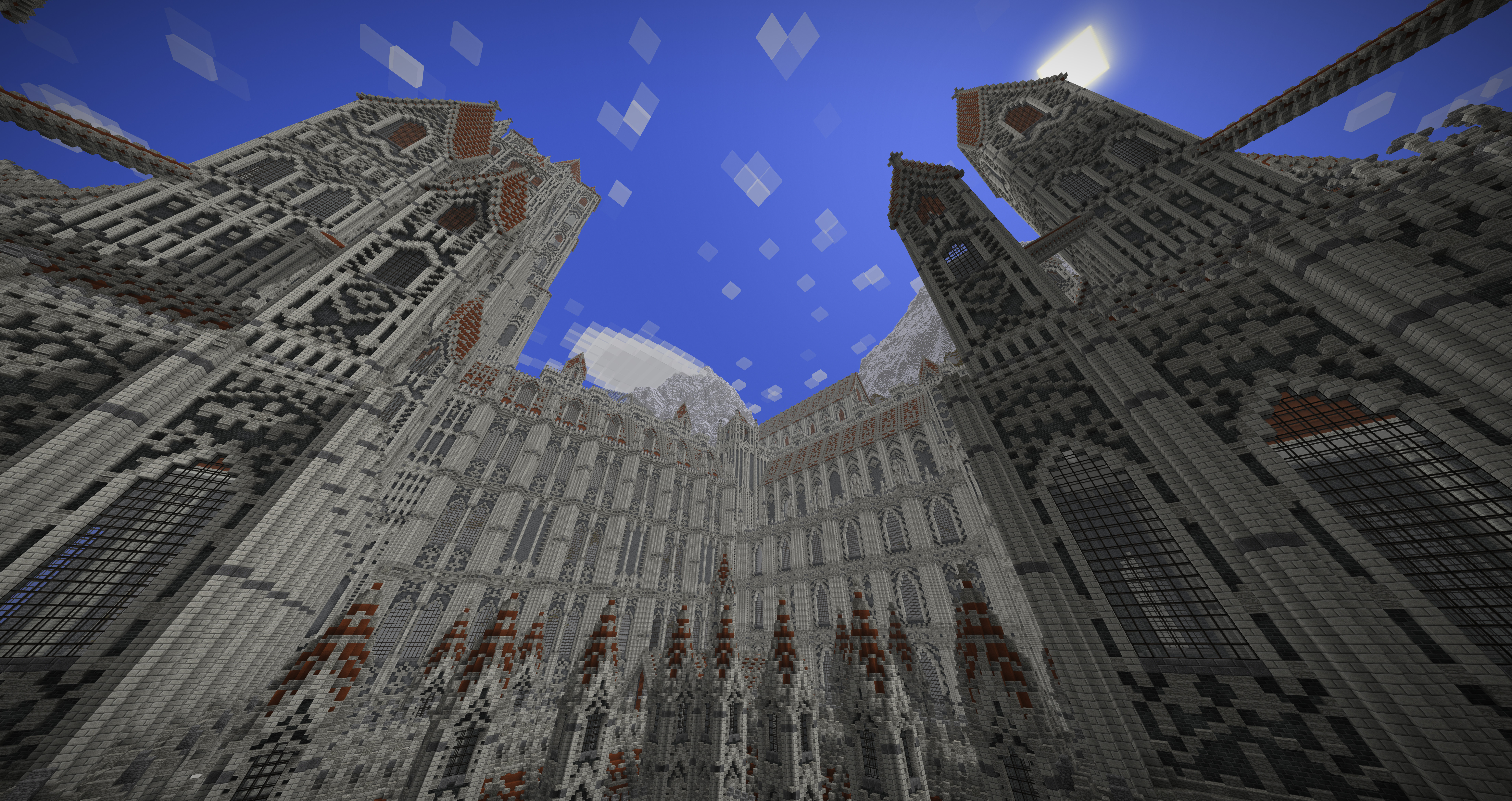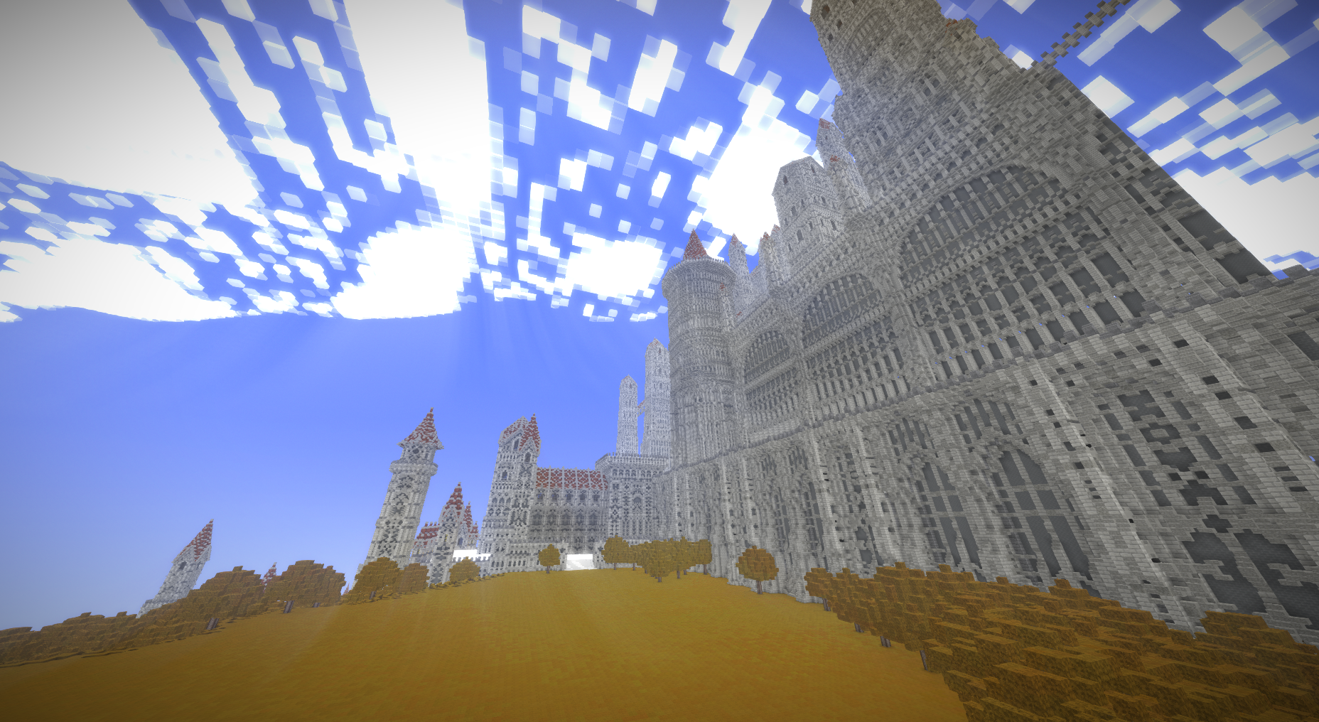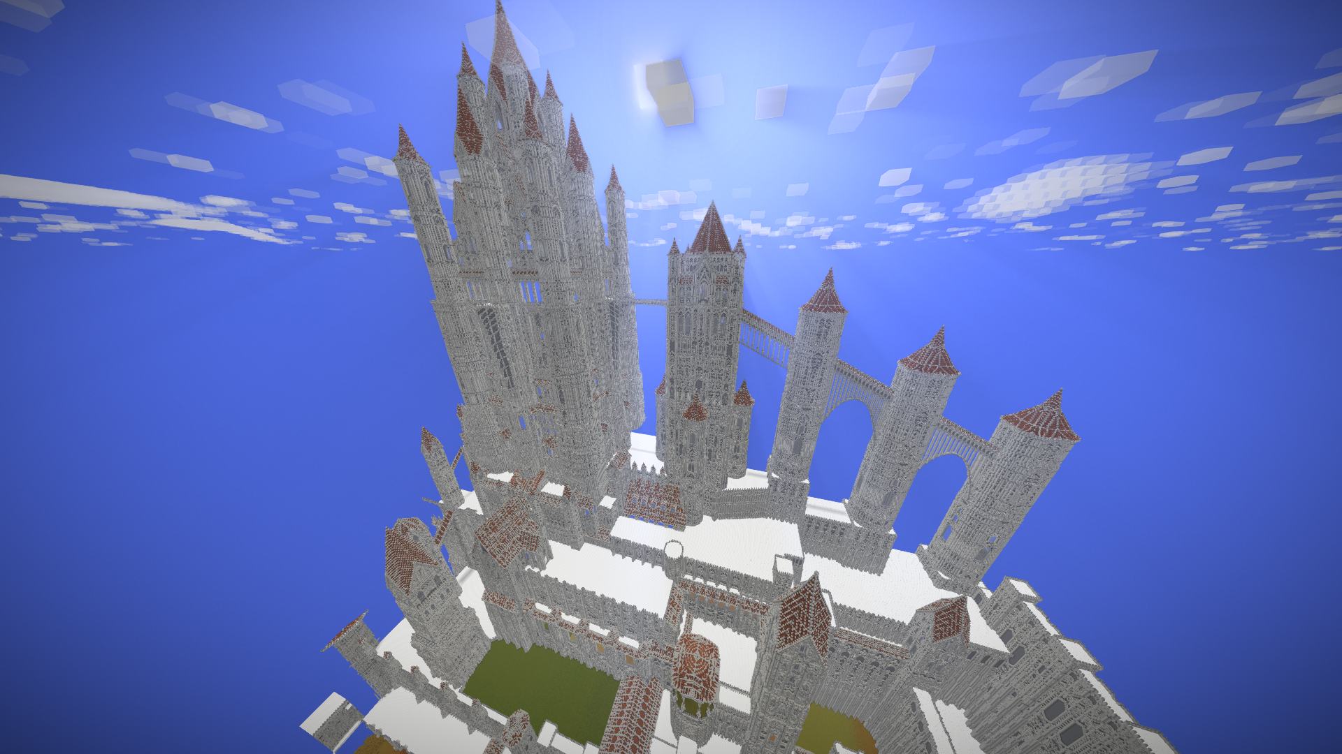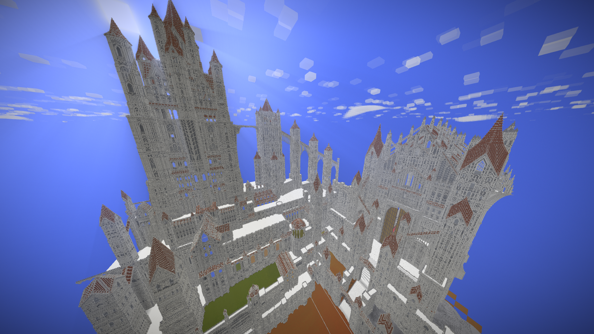 UmbraCreations Posted July 21, 2017 Author Report Posted July 21, 2017 Make LUXEMBRA great again! Sorry to make you all wait so long. I've been having a few breaks from the game but i always went back to it with slow progress. Right now i've been working on a part of the castle and of course i went completely crazy again, like always! Reaching up to the height of ~570 blocks, this is the biggest thing i've ever created already. I also discovered the commands to increase the viewdistance effectively which is the reason why i could even do these screenshots with so much visible. Quite the view if you are on the map because its so big already. I were also able to build the front wall and the entrance to the city as well as a second wall behind it. It looks very small in comparisation with the rest but is is actually pretty big lol Inside the city i also started to build a few towers and other buildings connected to the big castle. Its kinda lika a multiple lines of defense idea. Compared to the castle in the background and what will follow, the city looks extremely small, but you guys already know that the city itself is more than 600 -700 blocks in length and therefore is pretty big aswell. I am already excited to do my first flights through the map. The city really fits into the style i chose with the light grey stone etc. In the end i can only say that im really happy i started this project and i hope i will find more motivation and time this and next month. Also these past months had a few of the most frustrating moments of my building career. Starting from again corrupted save files (this time i had backups 6-12 hours old ones), because of random windows updates in the background that shut down my pc, an windows update that corrupted my gpu drivers, several crashes and most importantly, the burden of copy-pasting parts of the huge wall of the castle. Starting from the attempts of copy-pasting it complete (~250.000 blocks) to copy-pasting it in smaller parts and then even in 3-7 block hiigh layers (selecting the whole thing and then shrinking the size of the selected part in height so you copy paste layer after layer). It was so frustrating. Of course the game crashed under the heavy burden almost every time even when i did the layer for layer strategy which took me 2 days it still timed out. This is obviously not a big criticism toward the game because its kinda obvious it would happen, but of course it was really annoying :/. Now i even started to paint it all a little bit green and plant a lot of trees already to demontrate how well the contrast between the boring, but extremely massive looking gray buildings and the green works out. With more details put into it later it will be pretty beautiful i think. Thanks for reading this! ~ Chris
