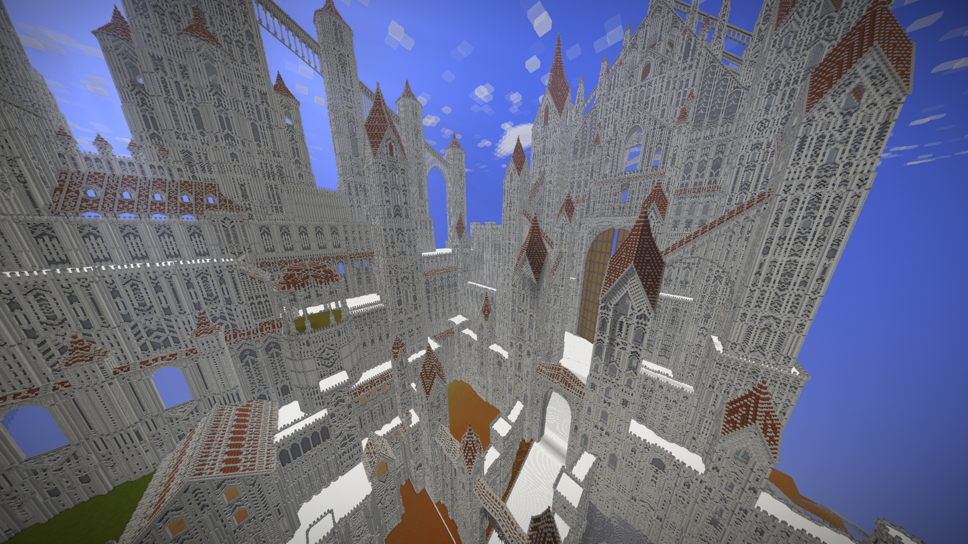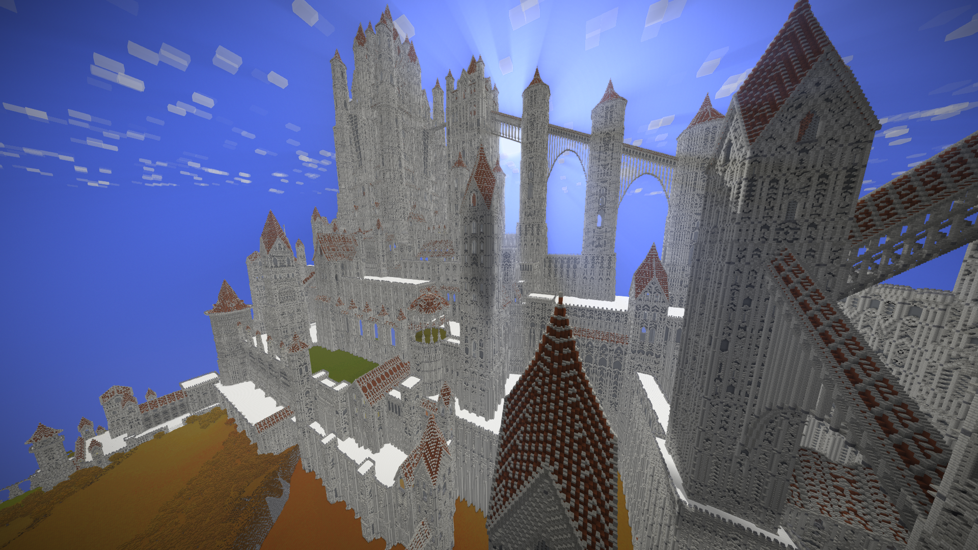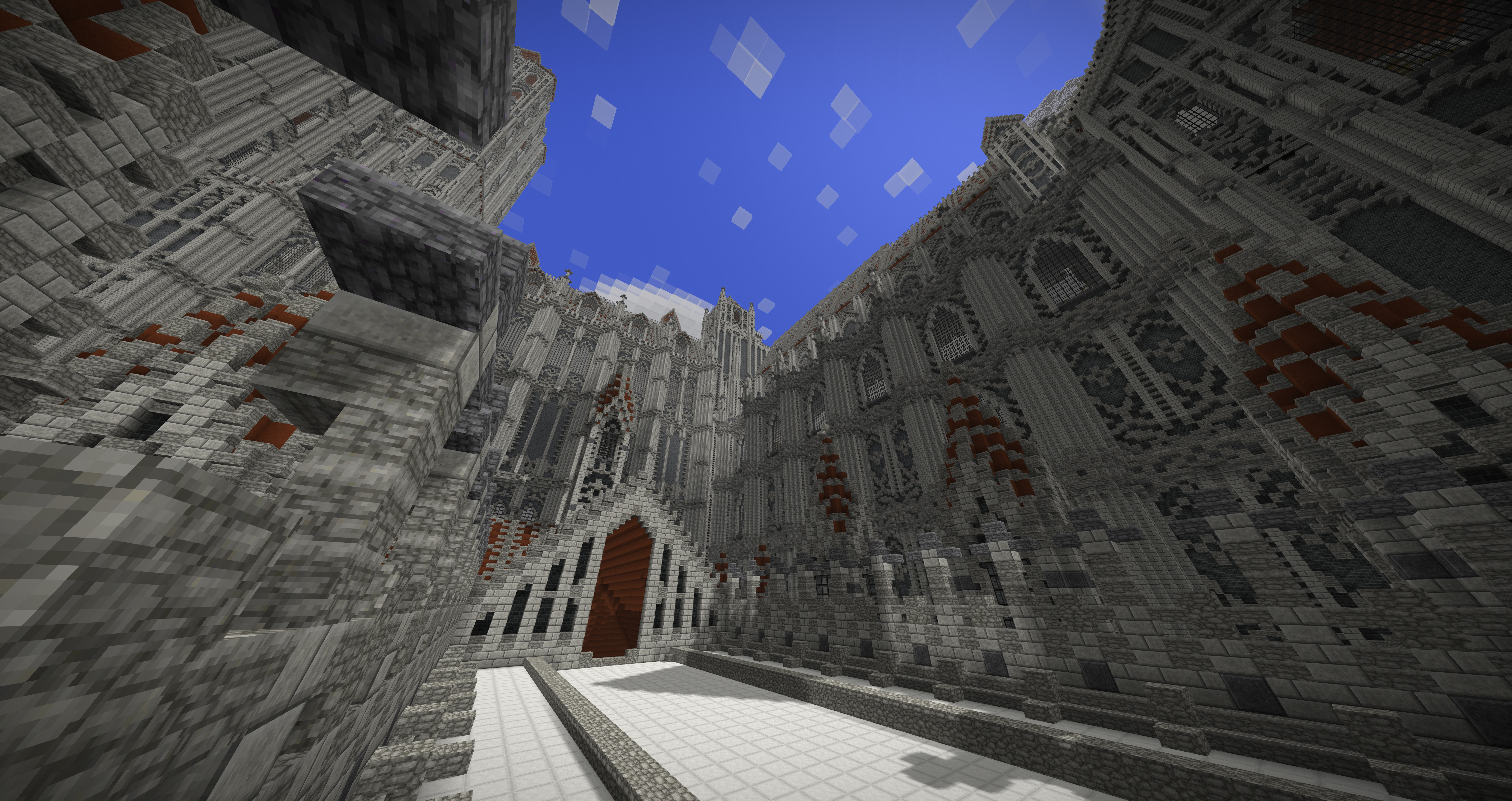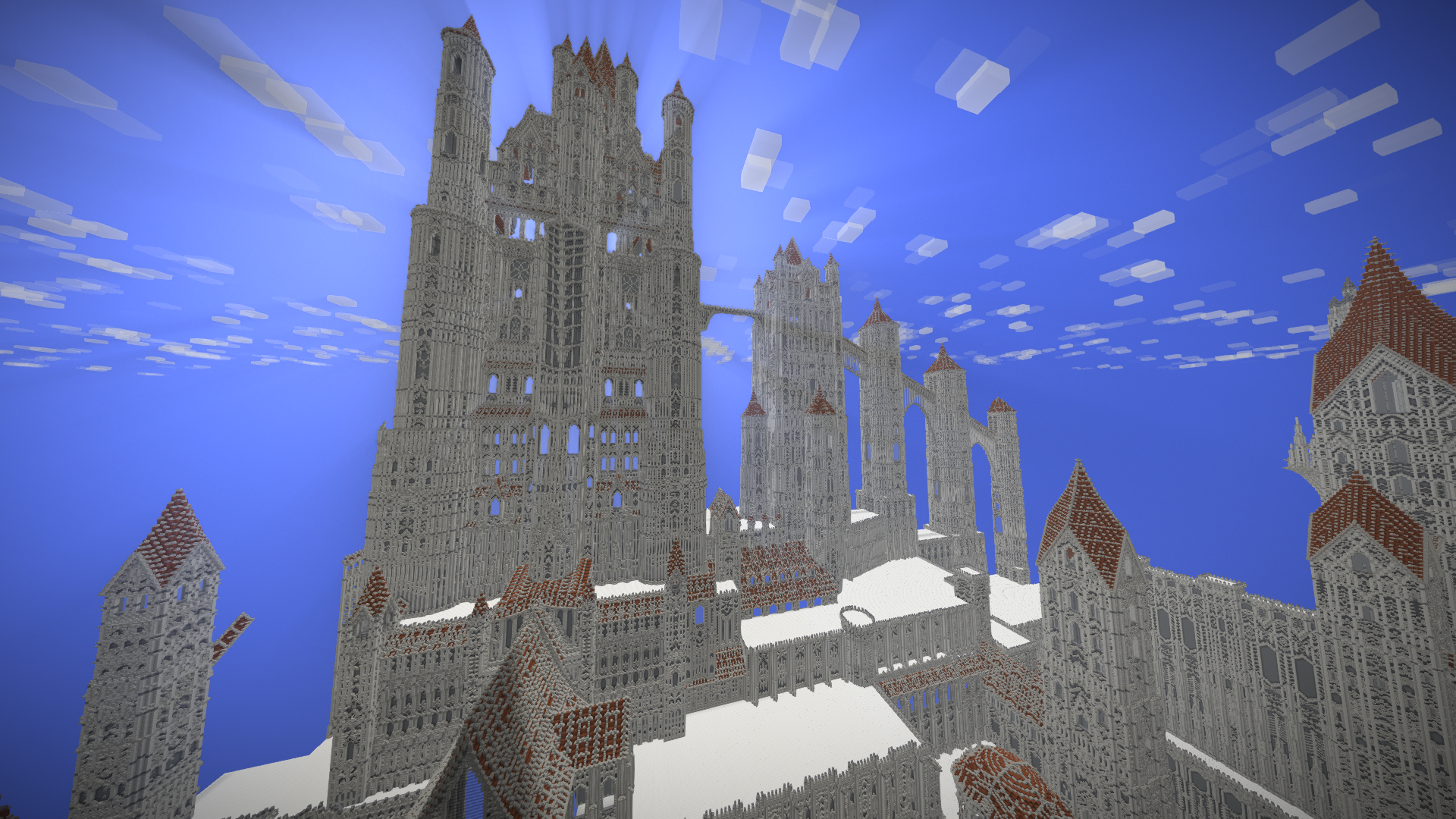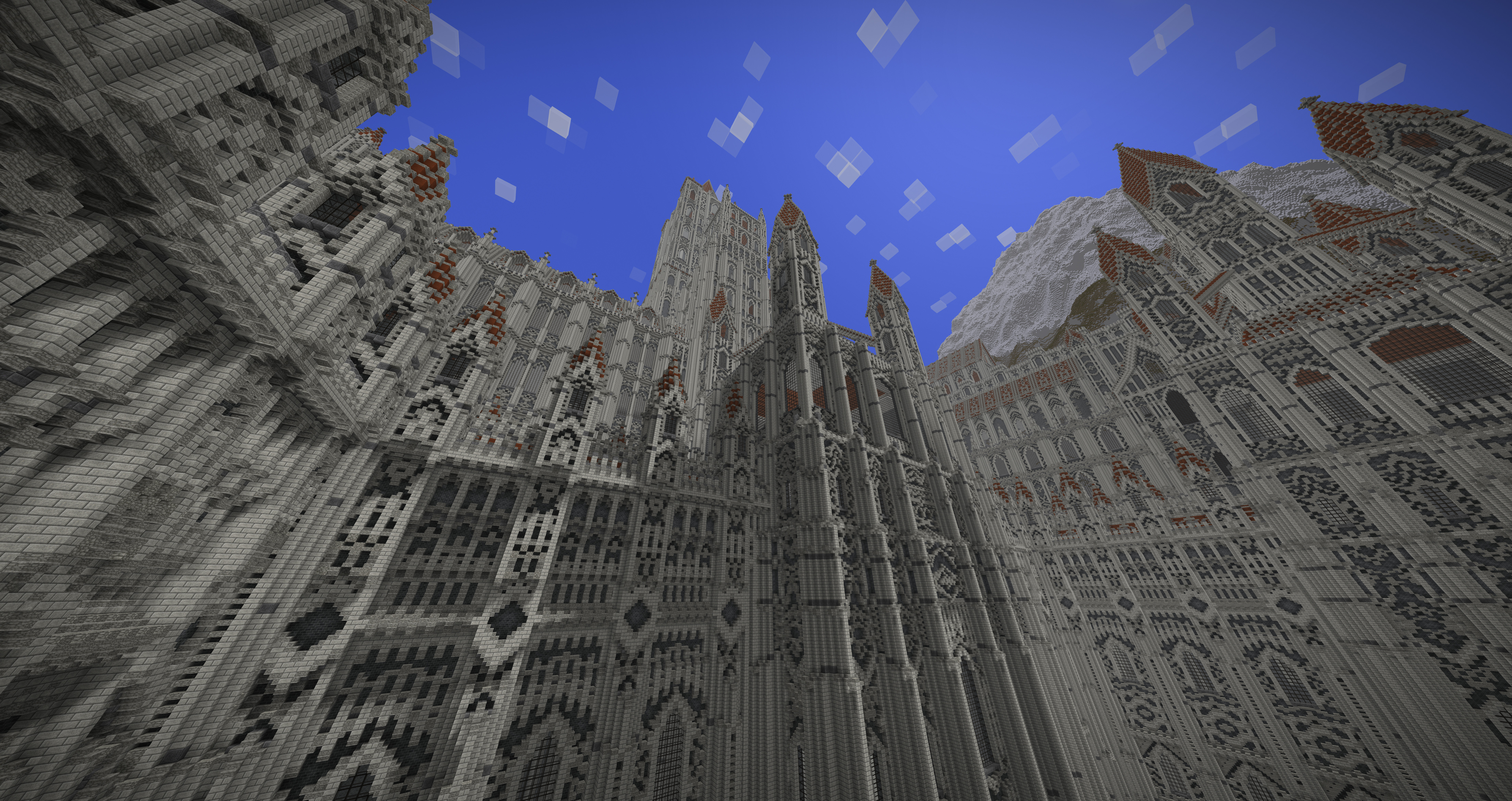 UmbraCreations Posted July 21, 2017 Author Report Posted July 21, 2017 Make LUXEMBRA great again! Sorry to make you all wait so long. I've been having a few breaks from the game but i always went back to it with slow progress. Right now i've been working on a part of the castle and of course i went completely crazy again, like always! Reaching up to the height of ~570 blocks, this is the biggest thing i've ever created already. I also discovered the commands to increase the viewdistance effectively which is the reason why i could even do these screenshots with so much visible. Quite the view if you are on the map because its so big already. I were also able to build the front wall and the entrance to the city as well as a second wall behind it. It looks very small in comparisation with the rest but is is actually pretty big lol Inside the city i also started to build a few towers and other buildings connected to the big castle. Its kinda lika a multiple lines of defense idea. Compared to the castle in the background and what will follow, the city looks extremely small, but you guys already know that the city itself is more than 600 -700 blocks in length and therefore is pretty big aswell. I am already excited to do my first flights through the map. The city really fits into the style i chose with the light grey stone etc. In the end i can only say that im really happy i started this project and i hope i will find more motivation and time this and next month. Also these past months had a few of the most frustrating moments of my building career. Starting from again corrupted save files (this time i had backups 6-12 hours old ones), because of random windows updates in the background that shut down my pc, an windows update that corrupted my gpu drivers, several crashes and most importantly, the burden of copy-pasting parts of the huge wall of the castle. Starting from the attempts of copy-pasting it complete (~250.000 blocks) to copy-pasting it in smaller parts and then even in 3-7 block hiigh layers (selecting the whole thing and then shrinking the size of the selected part in height so you copy paste layer after layer). It was so frustrating. Of course the game crashed under the heavy burden almost every time even when i did the layer for layer strategy which took me 2 days it still timed out. This is obviously not a big criticism toward the game because its kinda obvious it would happen, but of course it was really annoying :/. Now i even started to paint it all a little bit green and plant a lot of trees already to demontrate how well the contrast between the boring, but extremely massive looking gray buildings and the green works out. With more details put into it later it will be pretty beautiful i think. Thanks for reading this! ~ Chris