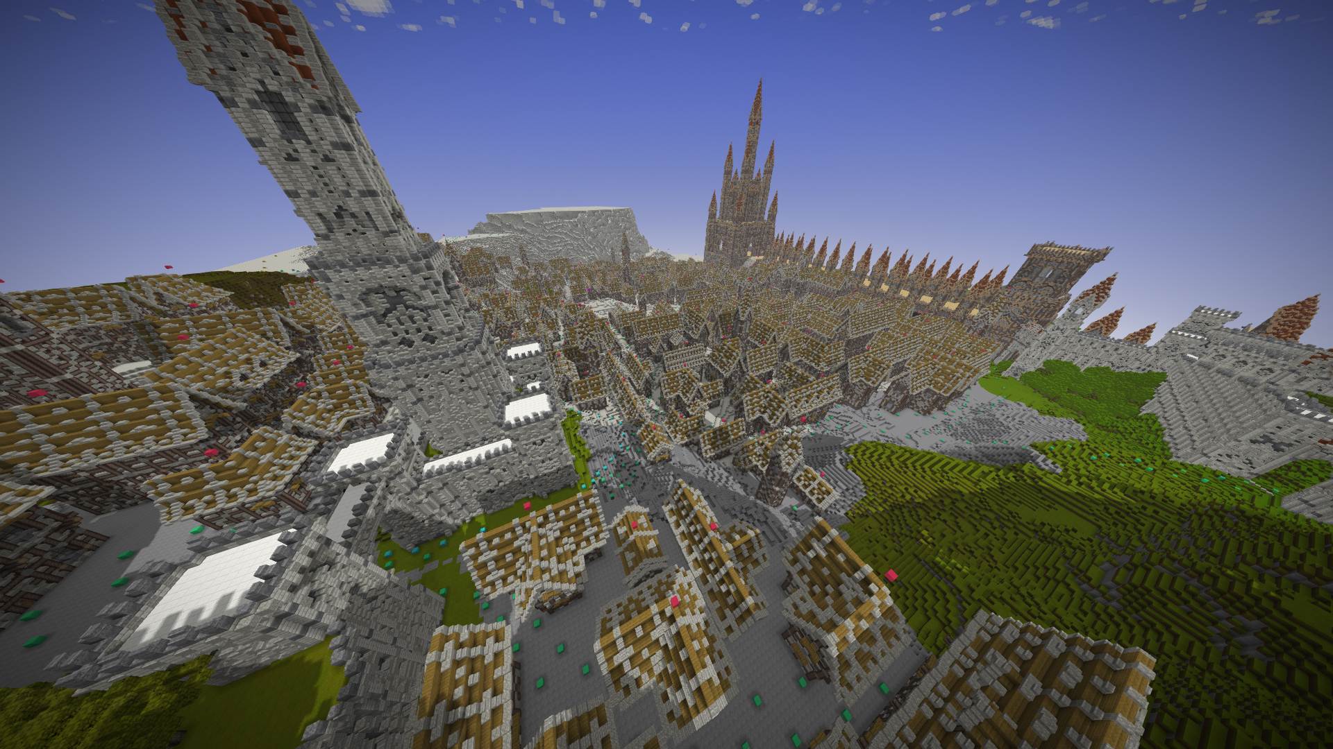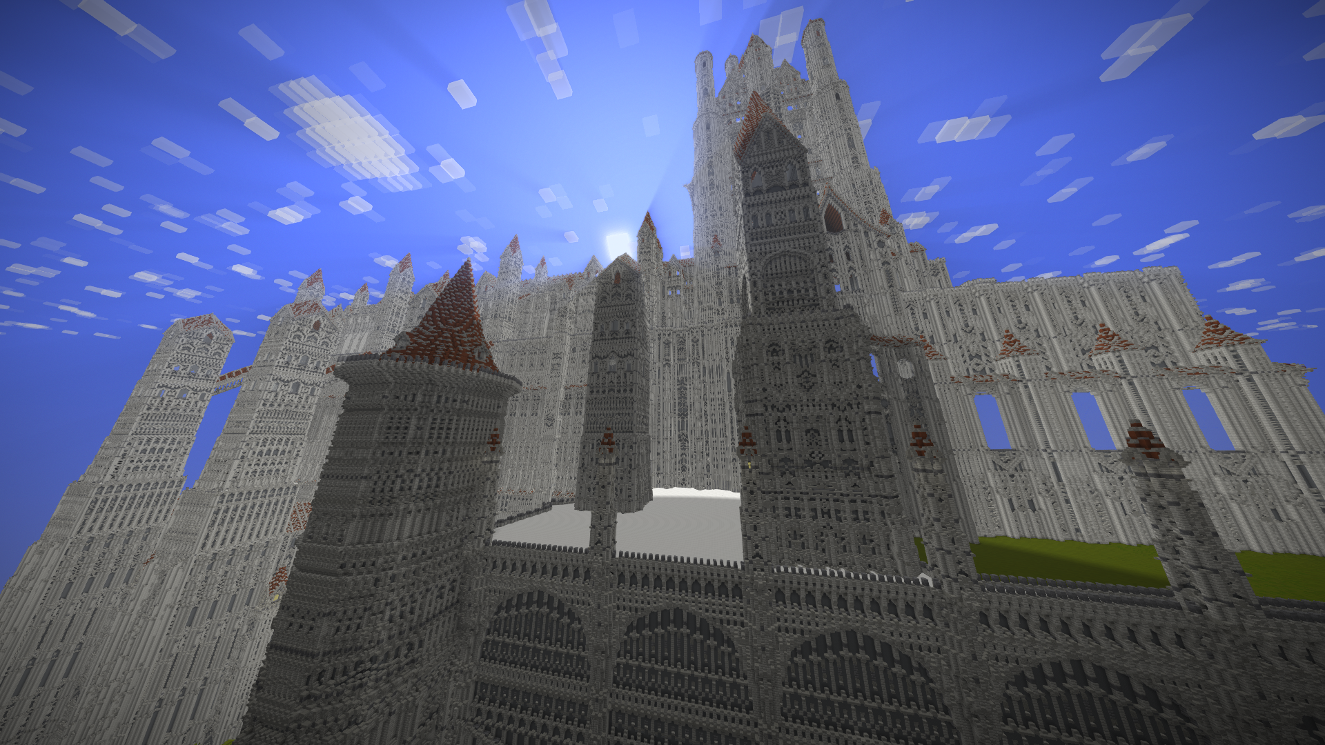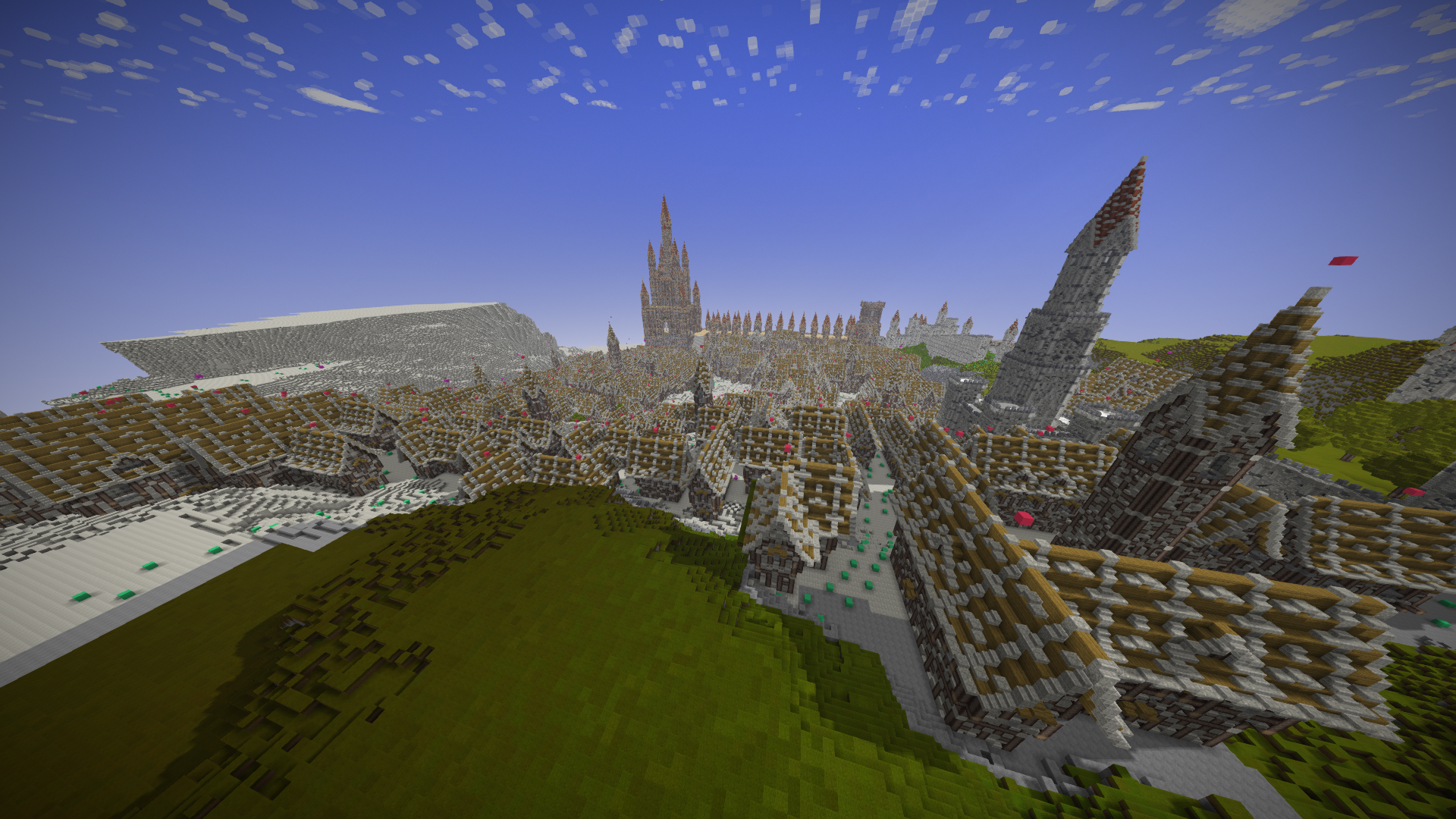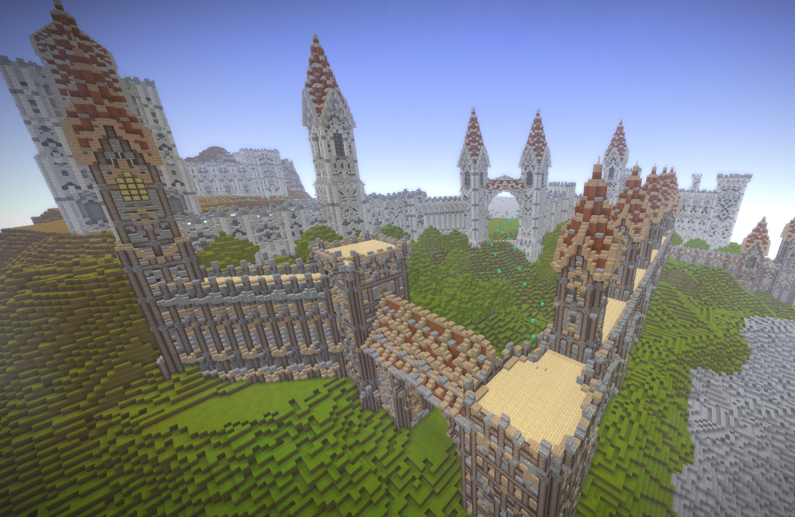 UmbraCreations Posted July 21, 2017 Author Report Posted July 21, 2017 Make LUXEMBRA great again! Sorry to make you all wait so long. I've been having a few breaks from the game but i always went back to it with slow progress. Right now i've been working on a part of the castle and of course i went completely crazy again, like always! Reaching up to the height of ~570 blocks, this is the biggest thing i've ever created already. I also discovered the commands to increase the viewdistance effectively which is the reason why i could even do these screenshots with so much visible. Quite the view if you are on the map because its so big already. I were also able to build the front wall and the entrance to the city as well as a second wall behind it. It looks very small in comparisation with the rest but is is actually pretty big lol Inside the city i also started to build a few towers and other buildings connected to the big castle. Its kinda lika a multiple lines of defense idea. Compared to the castle in the background and what will follow, the city looks extremely small, but you guys already know that the city itself is more than 600 -700 blocks in length and therefore is pretty big aswell. I am already excited to do my first flights through the map. The city really fits into the style i chose with the light grey stone etc. In the end i can only say that im really happy i started this project and i hope i will find more motivation and time this and next month. Also these past months had a few of the most frustrating moments of my building career. Starting from again corrupted save files (this time i had backups 6-12 hours old ones), because of random windows updates in the background that shut down my pc, an windows update that corrupted my gpu drivers, several crashes and most importantly, the burden of copy-pasting parts of the huge wall of the castle. Starting from the attempts of copy-pasting it complete (~250.000 blocks) to copy-pasting it in smaller parts and then even in 3-7 block hiigh layers (selecting the whole thing and then shrinking the size of the selected part in height so you copy paste layer after layer). It was so frustrating. Of course the game crashed under the heavy burden almost every time even when i did the layer for layer strategy which took me 2 days it still timed out. This is obviously not a big criticism toward the game because its kinda obvious it would happen, but of course it was really annoying :/. Now i even started to paint it all a little bit green and plant a lot of trees already to demontrate how well the contrast between the boring, but extremely massive looking gray buildings and the green works out. With more details put into it later it will be pretty beautiful i think. Thanks for reading this! ~ Chris