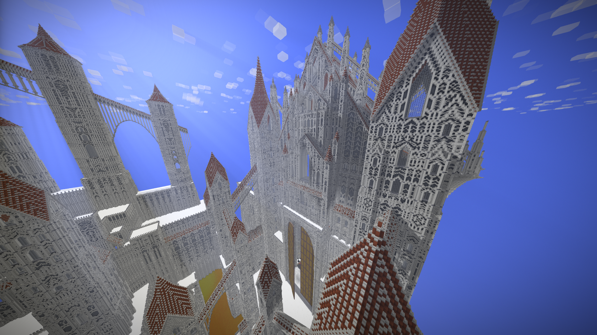 UmbraCreations Posted January 10, 2018 Author Report Posted January 10, 2018 A New Year - New Release - New Update Hi! I decided to postpone my original update wich was planned around Christmas as i was picking up in speed and productivity again. A little update has been put out to the VS Team as the Shadow update was released as well as some new pics on the blog entry about me. Some pictures should therefore not be new but i think i'll put them in anyways. I am very happy to announce that the left inner part of my castle has been finished basic structure wise and also the throne room with its amazing scale and size marks another milestone for my project! The tower that reaches maximum height on my mapsettings (1024 blocks) divides the wall and the main part of the castle that connects to the throne room part. Looking on my map as well as on these pictures, it is very easy to forget how big everything actually is. The throne rooms highest block being on 763 making it three times the height of Minecraft. And also the dimensions of the city + castle itself reached more than 2300 blocks from the most eastern to the most western placed block. The city as well as the wall still stand beautiful especially with the wonderful new shadows. What is left to say? Well, i am hyped to start right up with the next milestone. The royal palace that will be placed to the right of the throne room. The reason as why i am so motivated is that palace structures are very copy-paste intense. Which means that it will be done much faster than 300 little city houses or a huge fortress like castle. The past two months were very intense with the most progress i've ever achieved so far. I hope you like the pictures and i am sorry for keeping you all waiting for so long. I hope the next milestone will take less than a month! Thank you for reading this! Greetings from Germany ~Chris