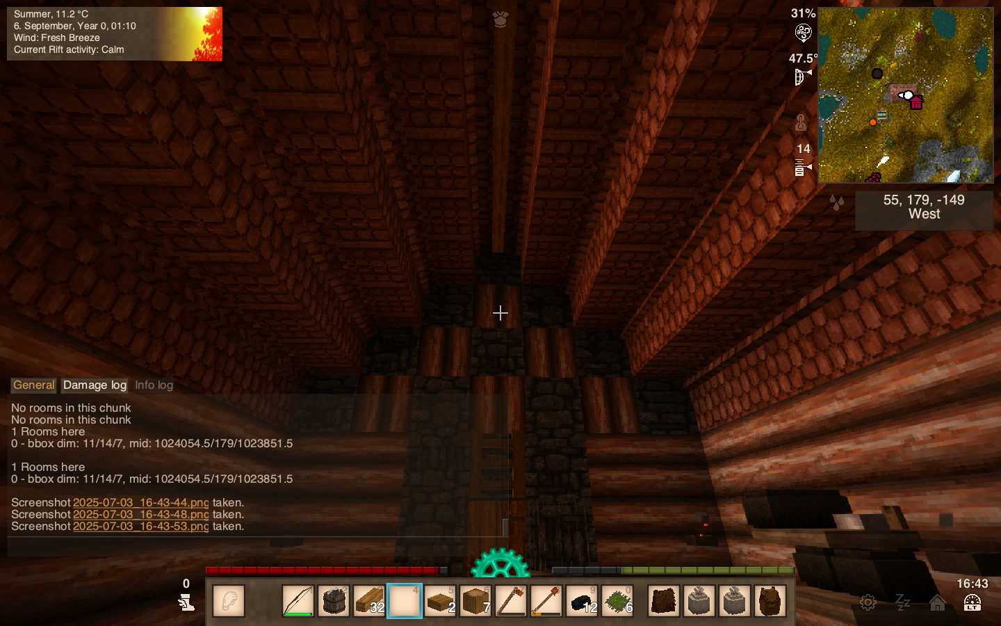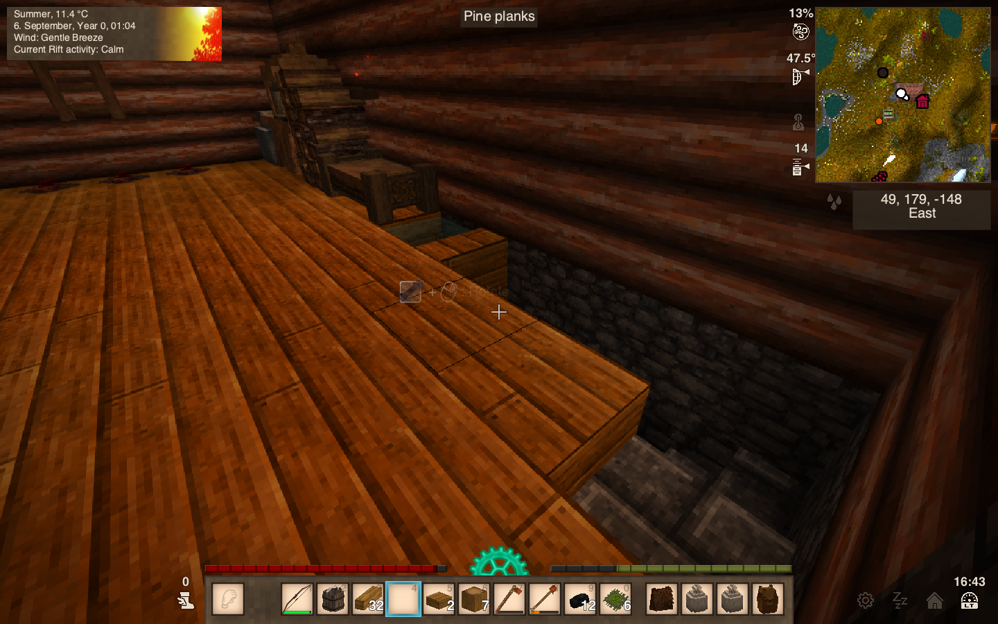 My floor is pine slabs, roof is clay shingles, walls are quarter logs&shale.