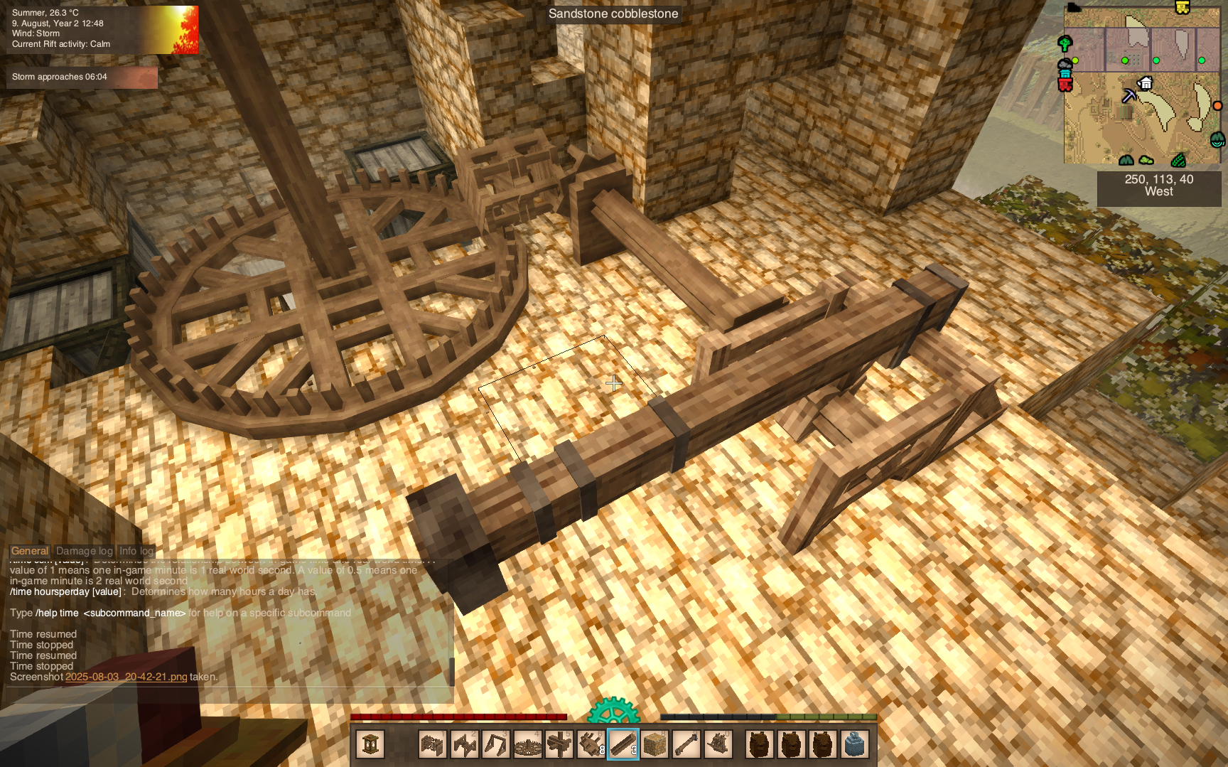 Echo Weaver Posted August 4, 2025 Report Posted August 4, 2025 (edited) I've had a simple mechanical power setup for my helve hammer for a while, and I wanted to add a pulverizer. It seemed like the logical thing was to set them both up with transmissions and clutches so that both could be connected but only one run at a time. In order to connect two devices to my power train, I understand I need a large gear. So I made a backup copy of my world to mess around in Creative where I could tear down and build up various configurations. I added a large gear to my existing axle descending from the windmill and built what I thought was a pretty tidy configuration. Then I engaged the clutch, and the helve hammer would not move. I tried a bunch of other configurations, but just adding the large gear and nothing else seems to convert my power train from one that runs a helve hammer just fine to one that can't move it at all, even when the wind is set to hurricane. Here's the most recent, simplest configuration with just the large gear and the helve hammer. I even set up the helve hammer pointing each direction in case there was something about the direction of spin. What am I not getting? Edited August 4, 2025 by Echo Weaver