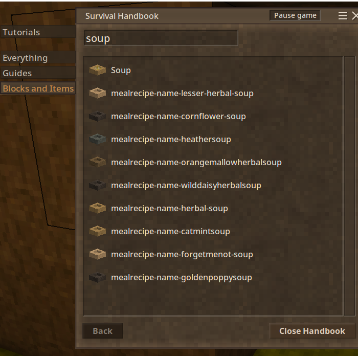 Also noticed the handbook is not showing the correct recipes for the items. Everything works if you follow the recipe defined via code. Not sure how to fix these issues.