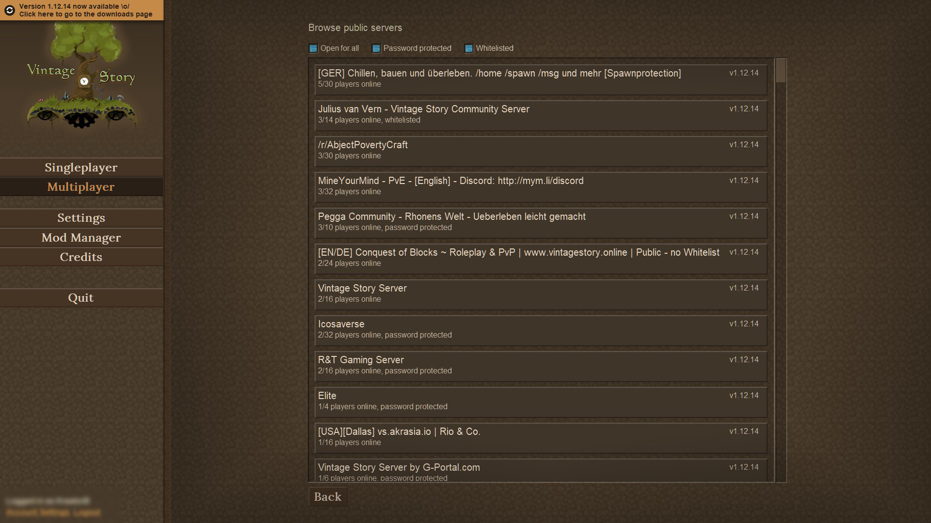 KreatorB Posted April 11, 2020 Report Posted April 11, 2020 Was wondering if when you get your vintage story server hosted and you set "AdvertiseServer": true, do you see it listed in the Multiplayer Section under browser public servers? If not how does one get it listed? Also is there a way to search of server? Thank you