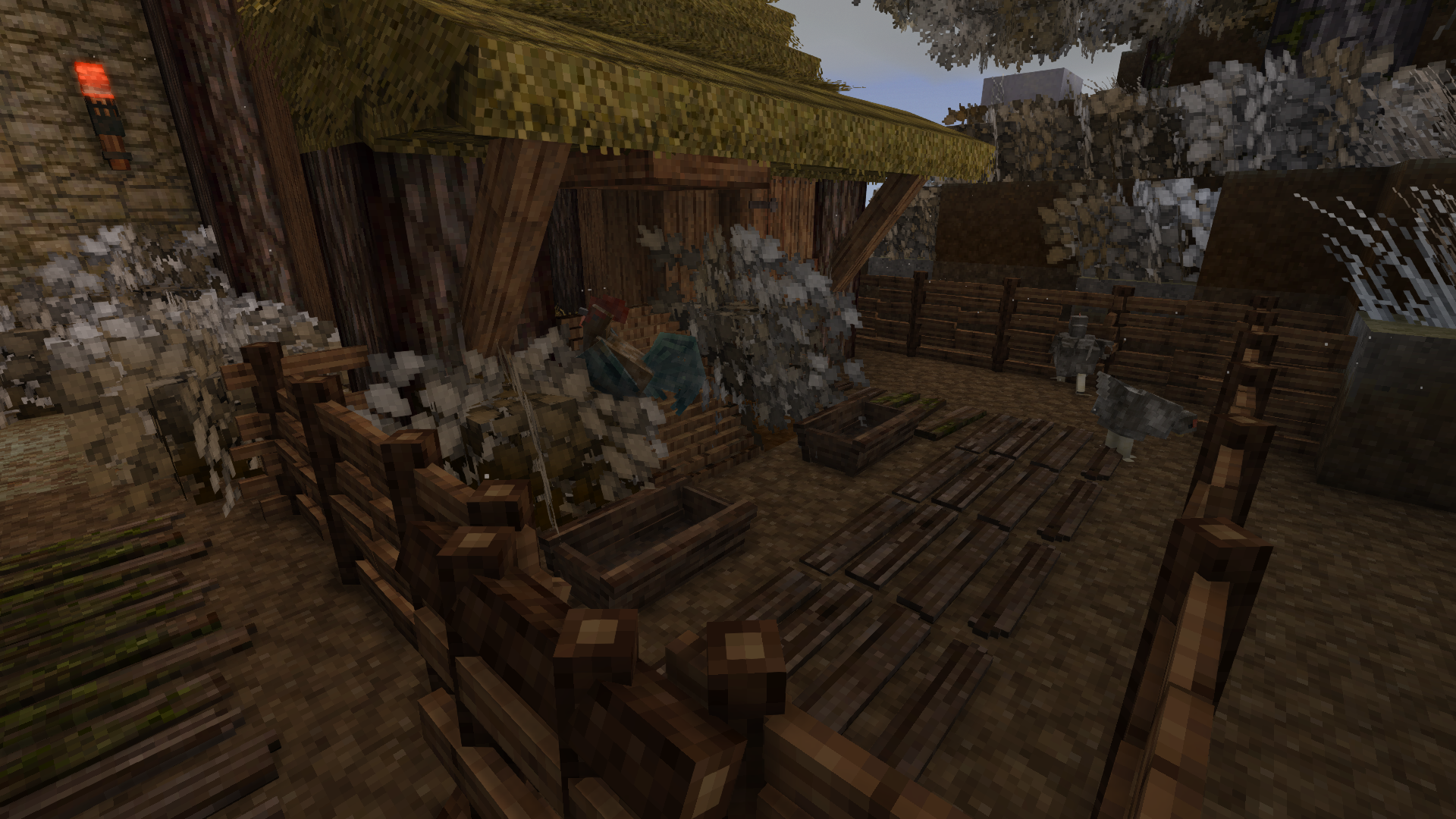 Nastrond Posted January 31 Report Posted January 31 It's January in my game and I decided to upgrade my dirt hut finally! I fell in love with this beauty here and tried to recreate it in my first survival ever. Took another reference for the interior and I feel like I managed to replicate what I had in mind entirely! But boy oh boy was that hard to build. And it is only a starter house. Love the challenge! Coming from 10+ years of building on Minecraft... I am amazed at the potential of this game!!! How cool is that I managed to chisel a coop ladder that is fully functional? Cannot wait to get more into chiseling, it is game changing! Love the ancient and medieval vibe this game deliver and the freedom to build whatever I have in mind! I only wish for some more blocks in the future, like inner and outer stairs corners and more variants for some interesting blocks (like the ancient white ones I saw in creative that screams ancient Greece build) but maybe chiseling will solve all of my problems. It is entirely a new concept of building for me. I cannot wait to see where this masterpiece of a game will go in the future! I also cannot wait to repair the treasures I marked and make my spaces more lived in. At some point I am sure I will be inspired to build a castle with a huge armory and an alchemist space with all those amazing ancient scrolls and candles and bottles, but I am loving the historical progression so far! How coul would be to have a secret-passage-library in the future I was wondering? But for now I am just a humble peasant! 4 1