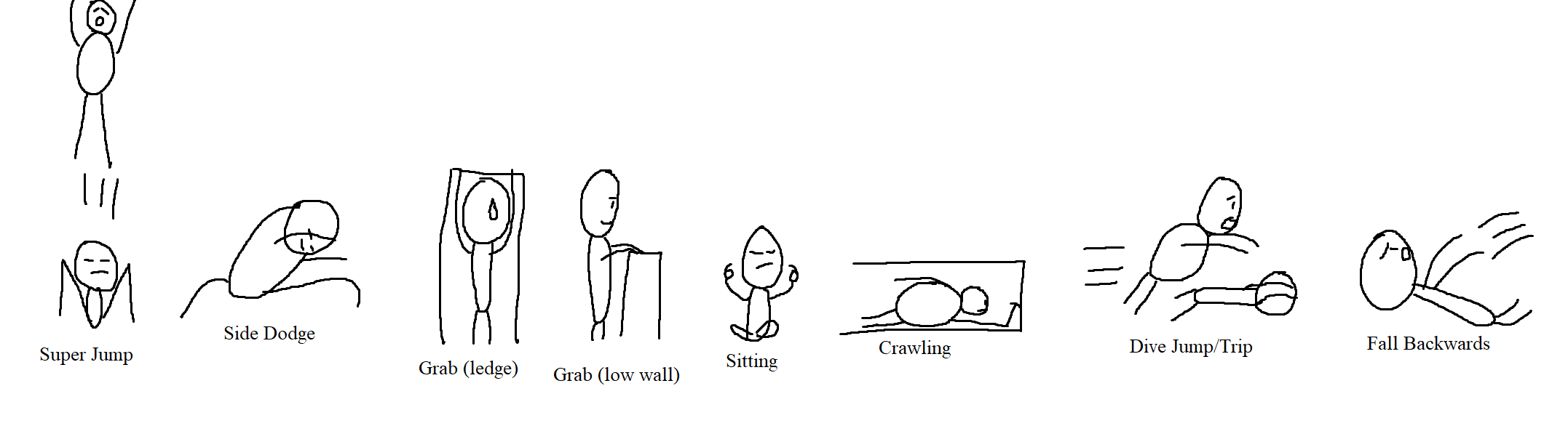 Omega Haxors Posted June 12, 2020 Report Posted June 12, 2020 Based on the Smart Moving mod from minecraft. Hold space while sneaking and standing still. You can jump up to 3 times higher if you charge it all the way. Double-tap A or D to use your long legs to quickly dodge 1 tile to the side, or S to move backwards Grab Key: Bound to Alt. Allows you to grab onto ledges and climb over them. Can also vault over low walls. Sitting is now activated by pressing grab while sneaking and standing still Get up by pressing Space Pressing a movement key while holding grab will allow you to crawl While crawling, your hitbox is flipped, meaning you can't turn in narrow paths but you can fit in 1x1 areas Hold grab while running and hit space to take a mighty leap forward. When you land, you'll be crawling If you run over small loose objects or awkward terrain, you might trip and fall into the crawling position Being taken down by a wolf or hit by a large object may send you backwards This will also happen if you trip over a small loose object or awkward terrain while moving backwards When this happens, you can use A/D to roll onto your belly to go into crawling Holding W allows you to use your weapon in this pose, and if you're not too heavy, space lets you get up