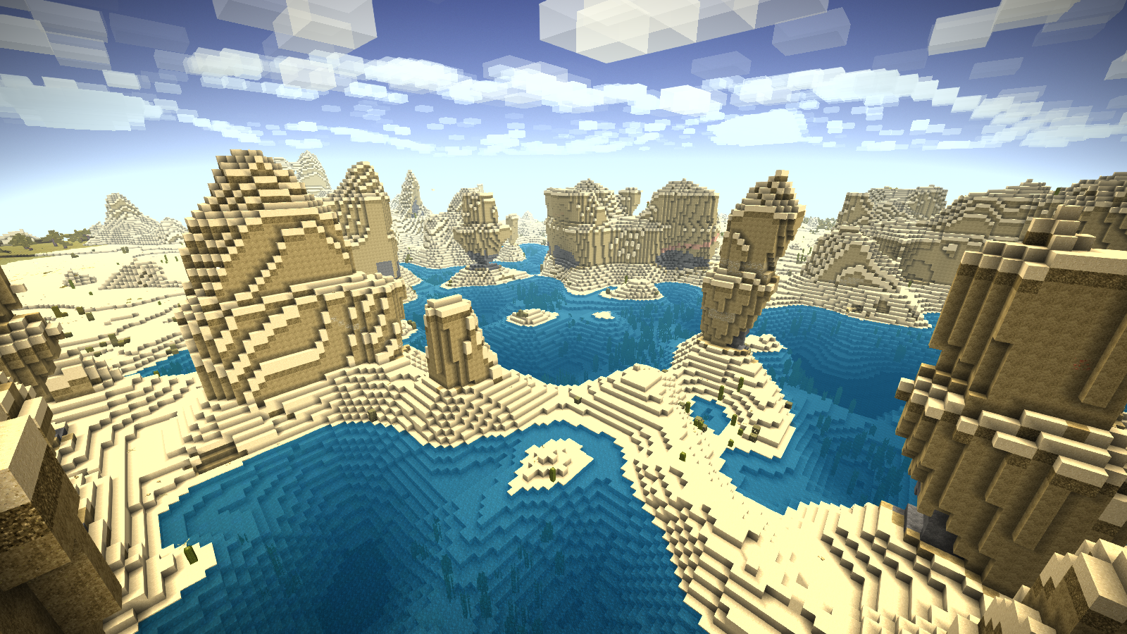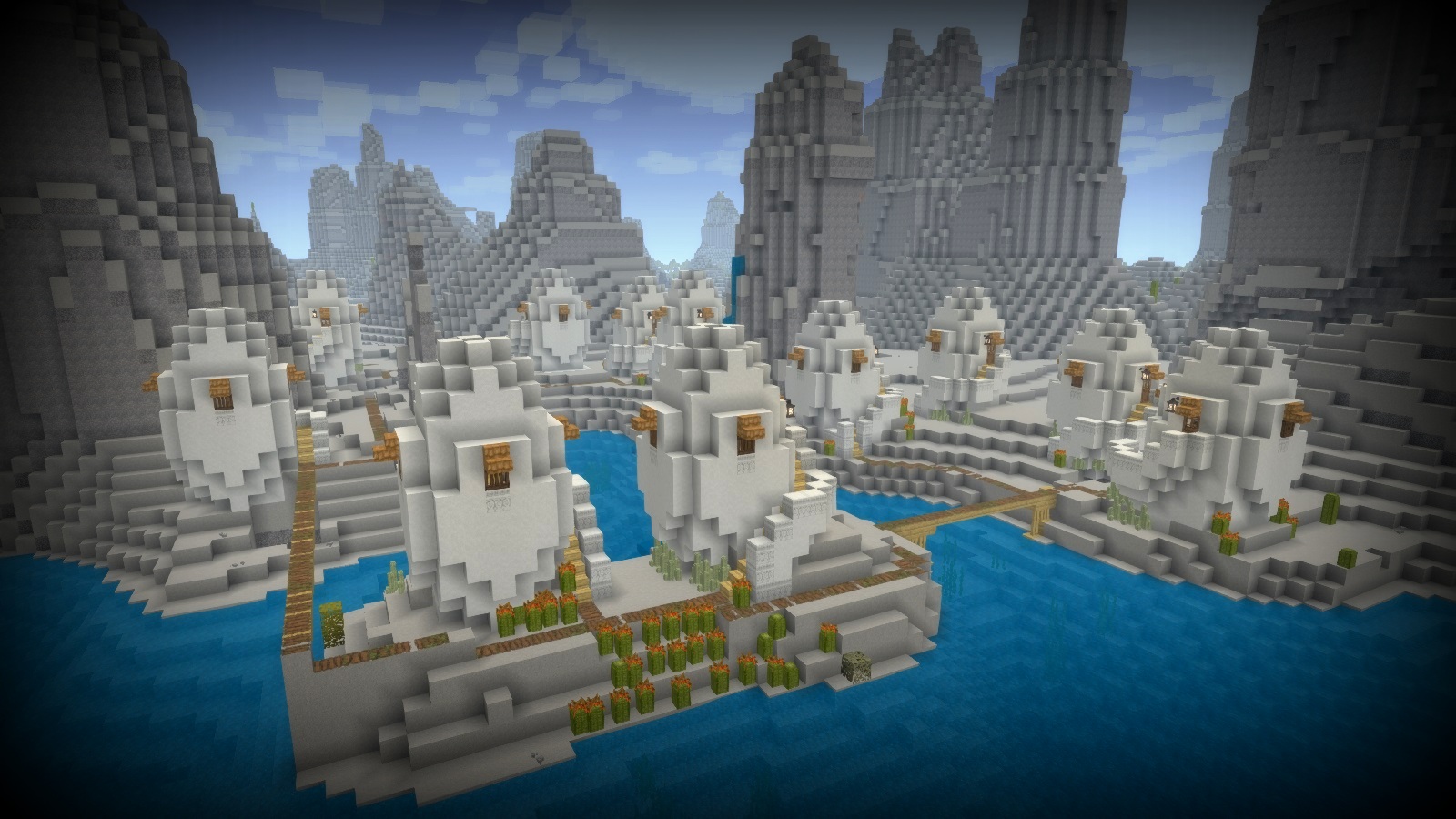 Ivan Posted January 22, 2018 Author Report Posted January 22, 2018 Sometimes the landscape suggests an appropriate building. These houses are prototypes, it can sometime be easier to explore building techniques using unusual textures, materials and dimensions, in this case the theme is Quartz. There are currently 44 variants of this house model, though only one is used here. Simply using World Edit, the base material of these houses can be changed to something else, like cobblestone, brick, or even clay.