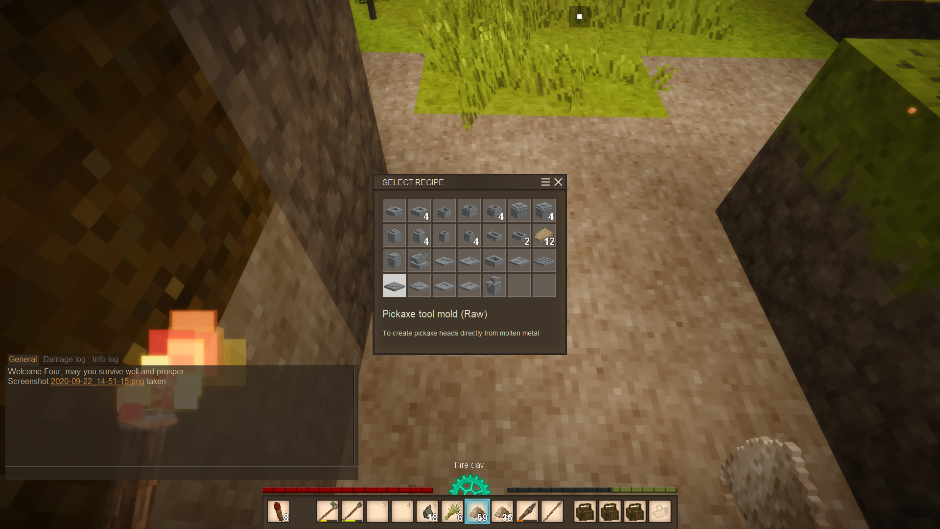 Four Posted September 22, 2020 Author Report Posted September 22, 2020 30 minutes ago, Streetwind said: I think you can just punch them until they "break" and pop out into item form, like any other block. But the faster way is having an empty slot in your hotbar selected, and right-clicking the mold. This works with almost all kinds of pottery, by the way - both fired and unfired. So the way I tried doing that is by making the mold out of clay just regularly, when I finished I tried right clicking, holding right, and punching the molds (tried twice) but nothing came out of it. Do I need a tool or anything? My inventory isn't full so I know it's not that.