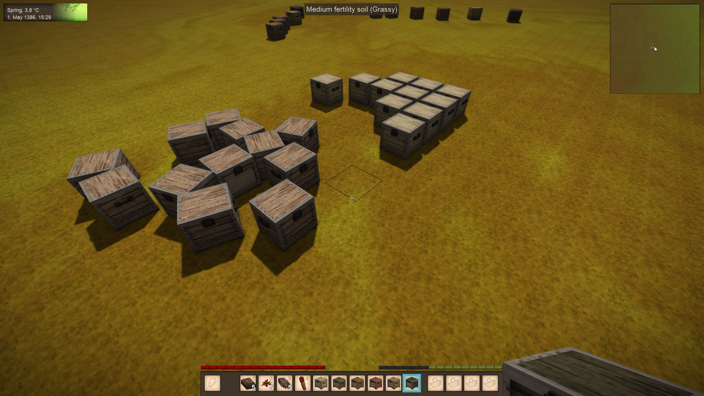 Additionally, a screenshot of testing in a superflat world. In the foreground you can see a cluster of oak chests, and a cluster of birch chests. Both were placed while circle-strafing. Accordingly, the oak chests are a wild jumble of different orientations. The birch chests, meanwhile, all face the same direction.