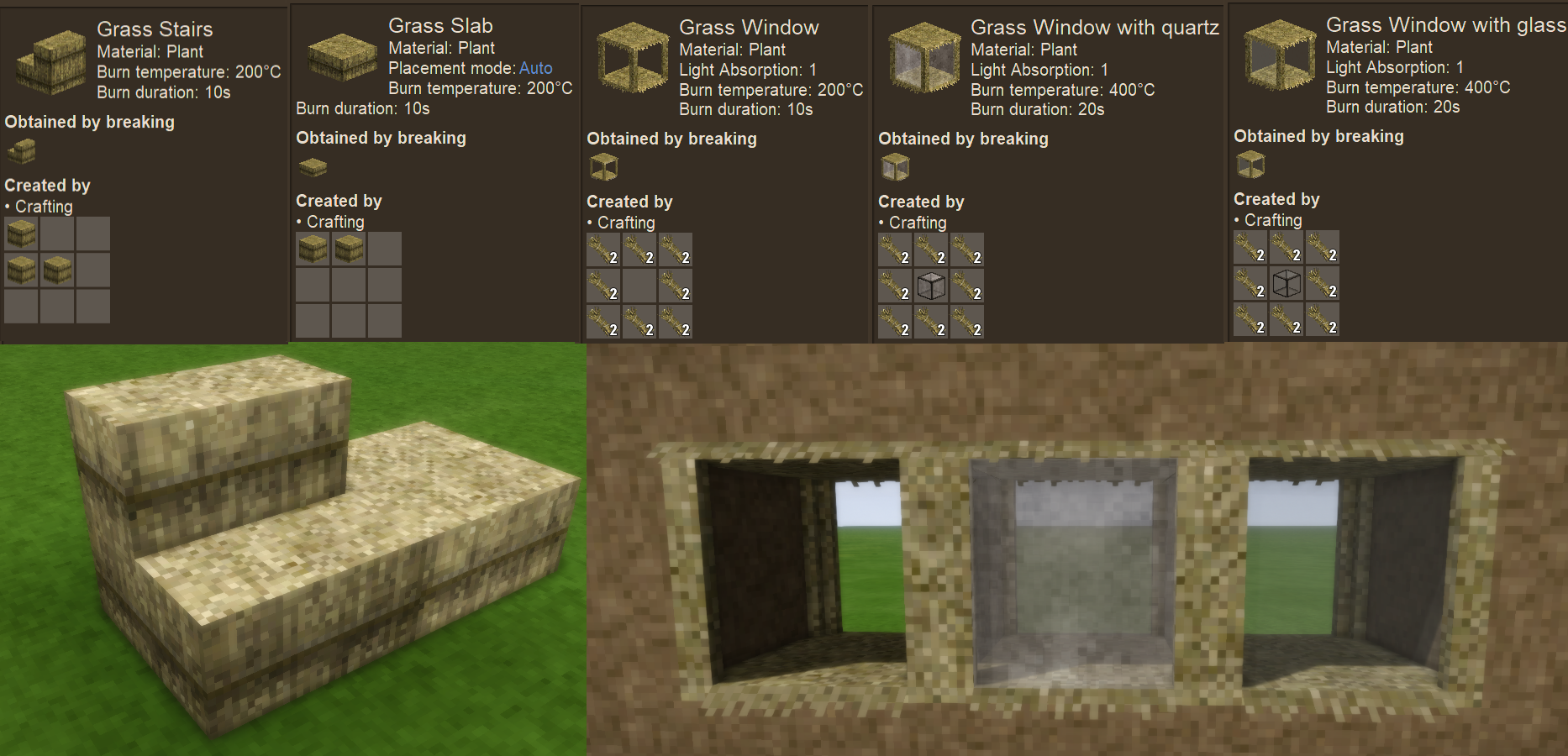 Minnigin Posted December 12, 2020 Report Posted December 12, 2020 (edited) A simple mod that adds early game blocks made with grass like a door, table, chair and a grass carpet, more to come and I'm always looking to improve the textures. What's a winter roof without icicles am I right? Here's some icicles for you  Thatch roofing update is here! Check it out and leave me some feedback. Post me some pics if you like    GrassStuff-1.1.0.zip  inspired by this discord comment :    Edited March 15, 2021 by Minnigin checked to see if all is fine with 1.14.8 6 2