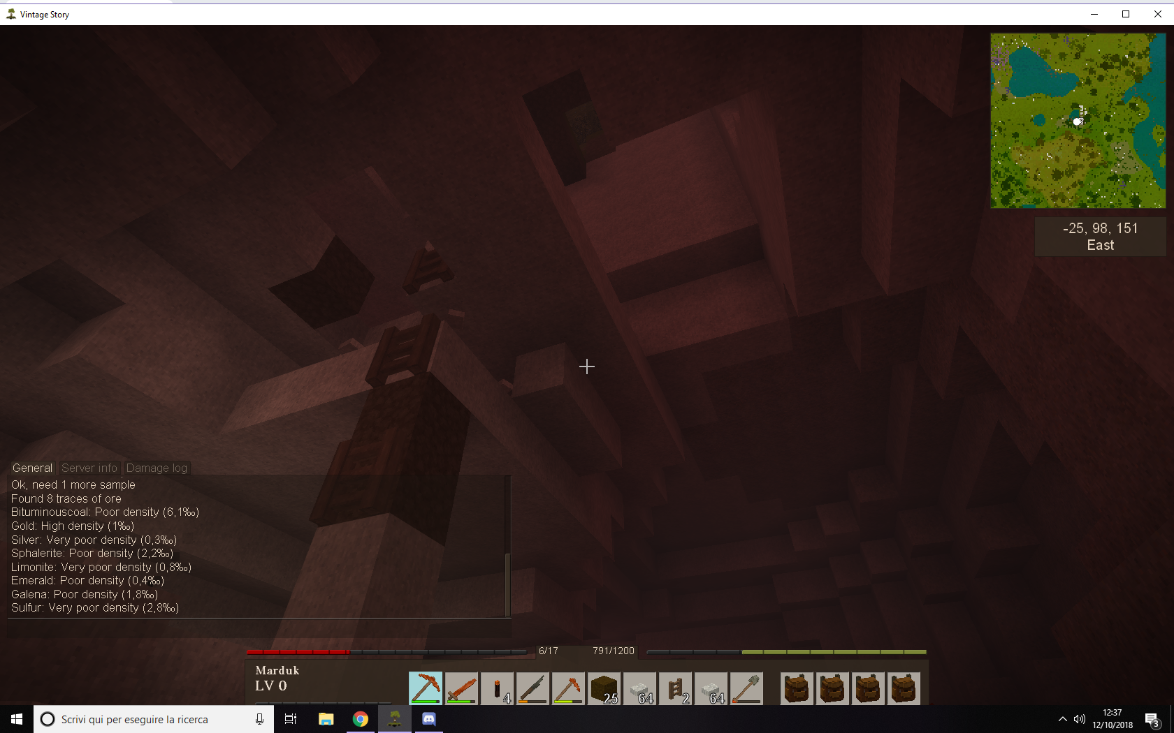Alessandro De Col Posted October 12, 2018 Author Report Posted October 12, 2018 i'm really start to think that there is something wrong with my game/world. i know there are few chances, and i've tryed to mining with a strategy...but still, how many chances are there to not find anything? 5 more days (in real life). a lot of copper pikaxe broken...and still NOTHING of ANYTHING! i'm mining by layers now. i go down like 5 bloks, than i spread wide like 10 in all directionand than 5 more down, and repeat. In the picture i've found a cave and the reading is the same as the surface...i just broke 3 more pikaxe here.. i cant spot a singleblok of anithing.. i dont think is normal