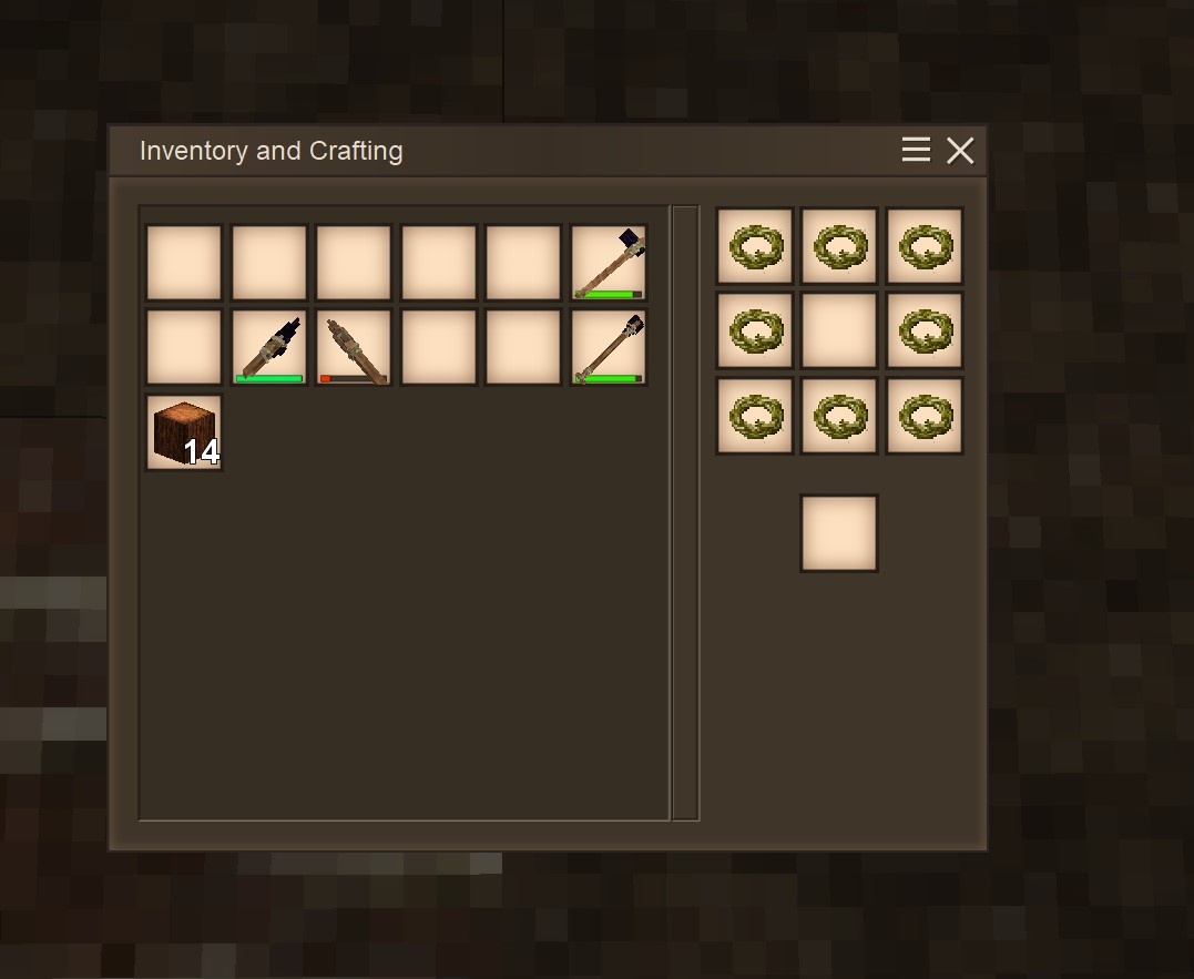 Garjouan Posted May 5, 2022 Report Posted May 5, 2022 Hello, i encountered the following problem. I wanted to make a vines basket (https://wiki.vintagestory.at/index.php?title=Basket). I made the rope out of vines, I put it in the crafting box... well no basket for me (see screenshot). I am not sure if this is a bug, or a problem with the mods I have installed: Bullseye v2.30 Flint Chisel v1.0.2 From Golden Combs v1.3.13 Lichen v1.6.1 OresAPlenty Mod v2.5.0 ProspectorInfo v3.1.2 I could find any topic with this bug so far, maybe I just overlooked something?