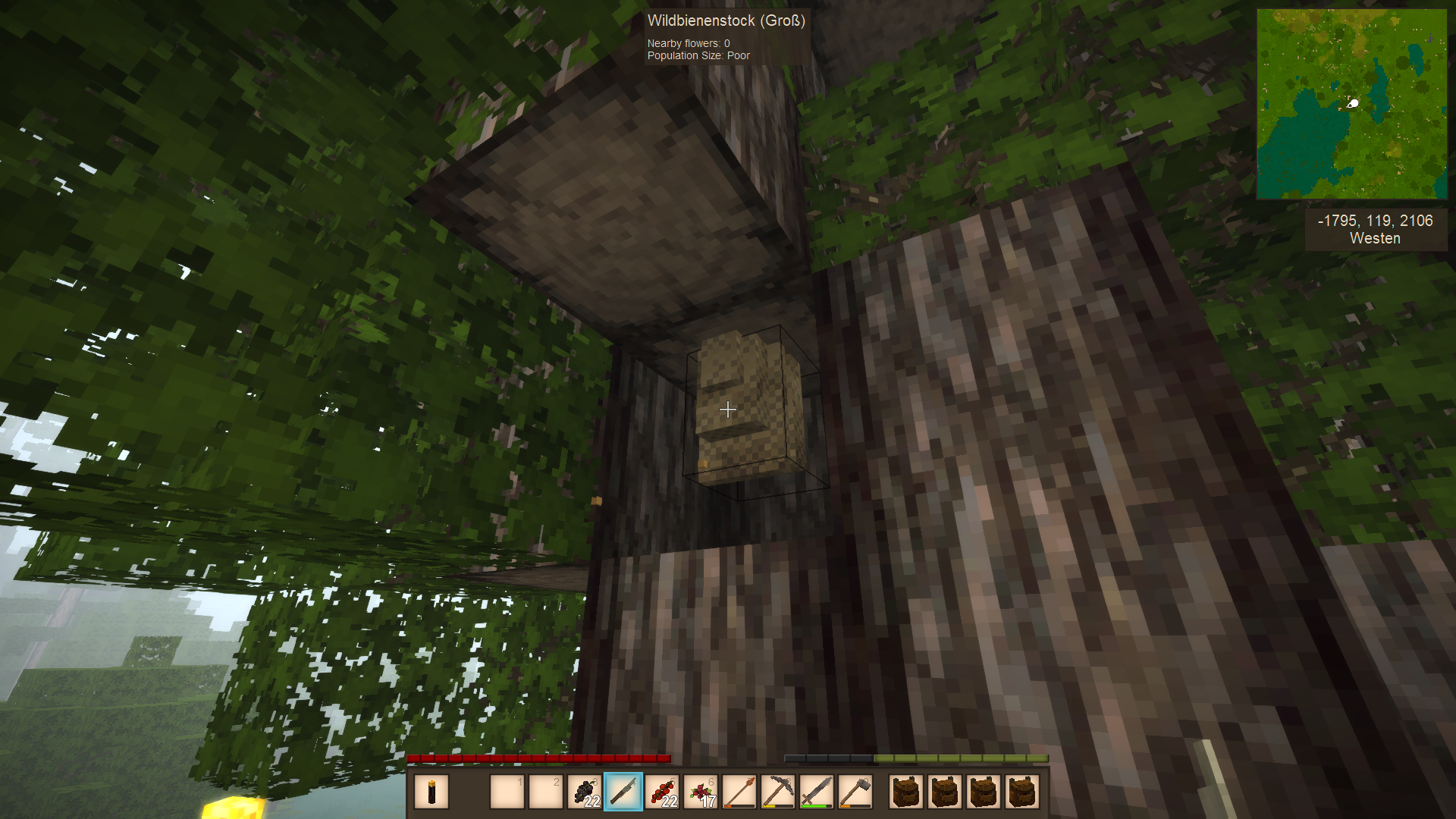 Elkahuna Posted May 8, 2020 Report Posted May 8, 2020 Also ich hatte den besiedelten Bienenkorb in meine Base aufgestellt. Natürlich gesichert vor Waschbären. Die Strohpuppen nicht vergessen. Die sind ein Spielereersatz (Die Bienen greifen dann die Puppen an nachdem man den Korb zerstört hat). Aber, du kannst leere Bienenkörbe neben einen besiedelten stellen und nach ner gewissen Zeit siedelt sich dann ein neuer Schwarm in diesen an. So habe ich immer einen neuen „Hauptstamm“ mit Bienen und muss nicht ständig ein wildes Volk suchen.