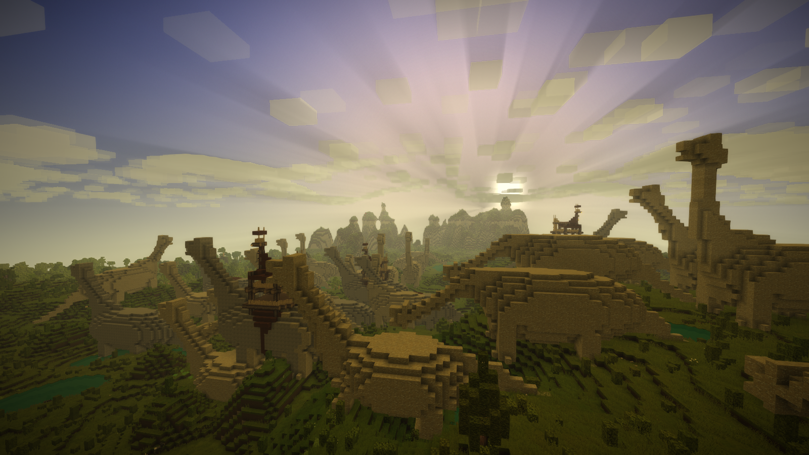 Ivan Posted January 3, 2018 Author Report Posted January 3, 2018 The last of my try out of these large forms, this time with a reduced size dinosaur included so the landscape can accommodate more. it never got to where I wanted it as my computer crashed with the load created by the entire scene at max view distance. But I think a feeling of scale and motion was achieved, which is what I wanted to experiment with. Don't worry about crashes with your own system, as this scene was rendered using an E1 processor. So it is possible to do something like this from modelling to placement and ultimately rendering, using a low powered notebook style computer. So this is a good demonstration of how powerful the Vintage Story engine is even on a minimum requirements system.