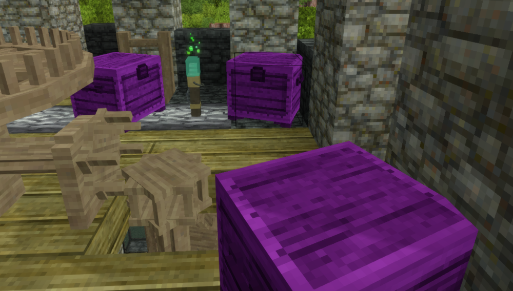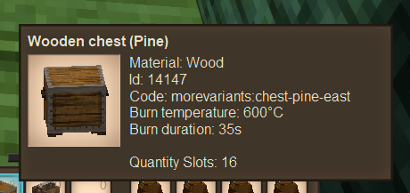 Using MoreVariants_v1.14.0_v1.3.1-without-lang on server and client, I scuttle up my windmill and see: These 3 are the purple ones from that last shot, but now rendered as the wicked orthogonal oak boxes! If I try to open them... yeah that crashed as expected. They were likewise the oakboxes after reconnecting. BUT! Once I argued with one using an axe, all three popped into rotated pine boxes (and one dropped as expected): I guess the axe scared them into behaving. Or caused some chunk recalculation, or something. The dropped one: Putting it down yields a similarly working pine chest. Newly crafted ones likewise work. I'm suspecting this has to do with needing multiple restarts and just waiting, but it seems odd that this hit unlabeled chests. I'll squawk if I see anymore oak mischief, but so far even with the no-lang change I haven't seen a chest without localization to Wooden chest (type).- 90 replies
