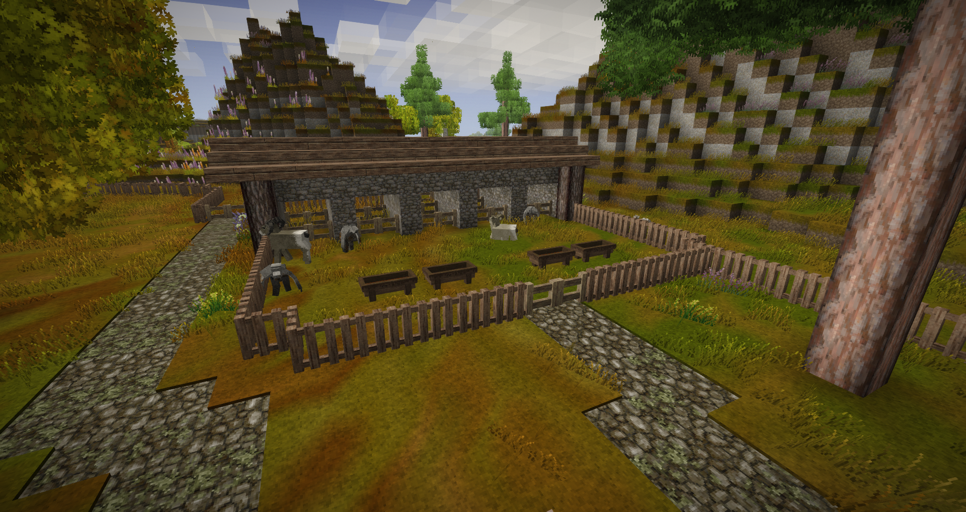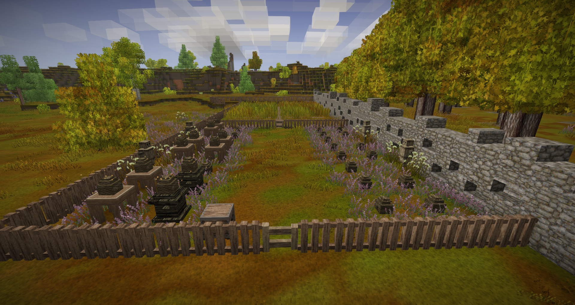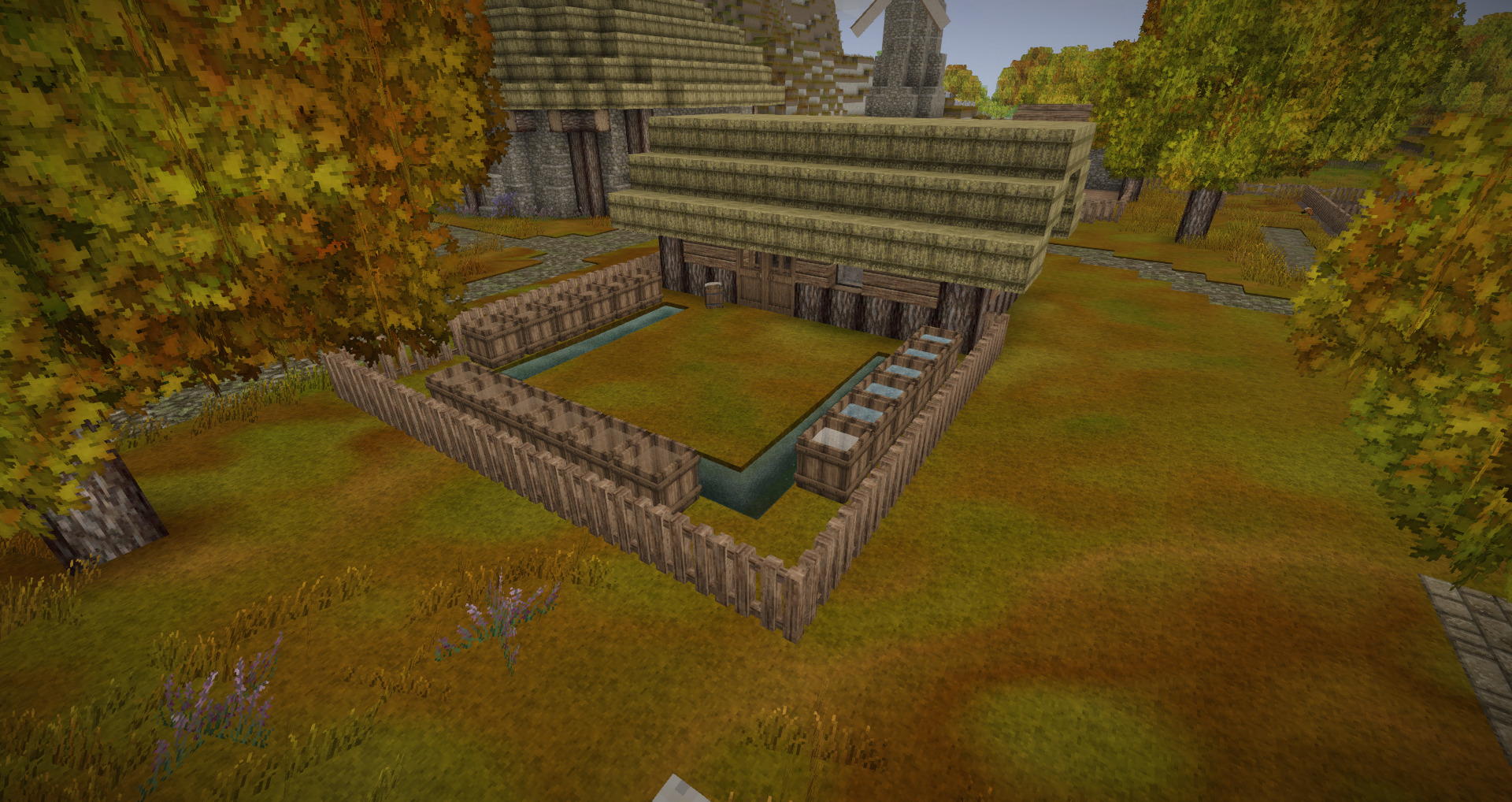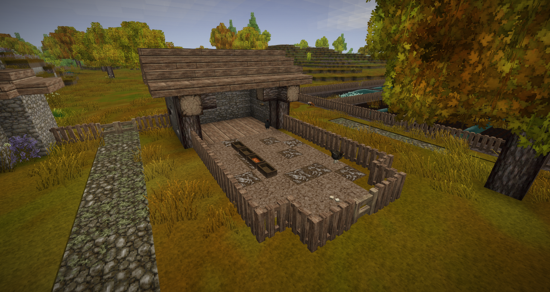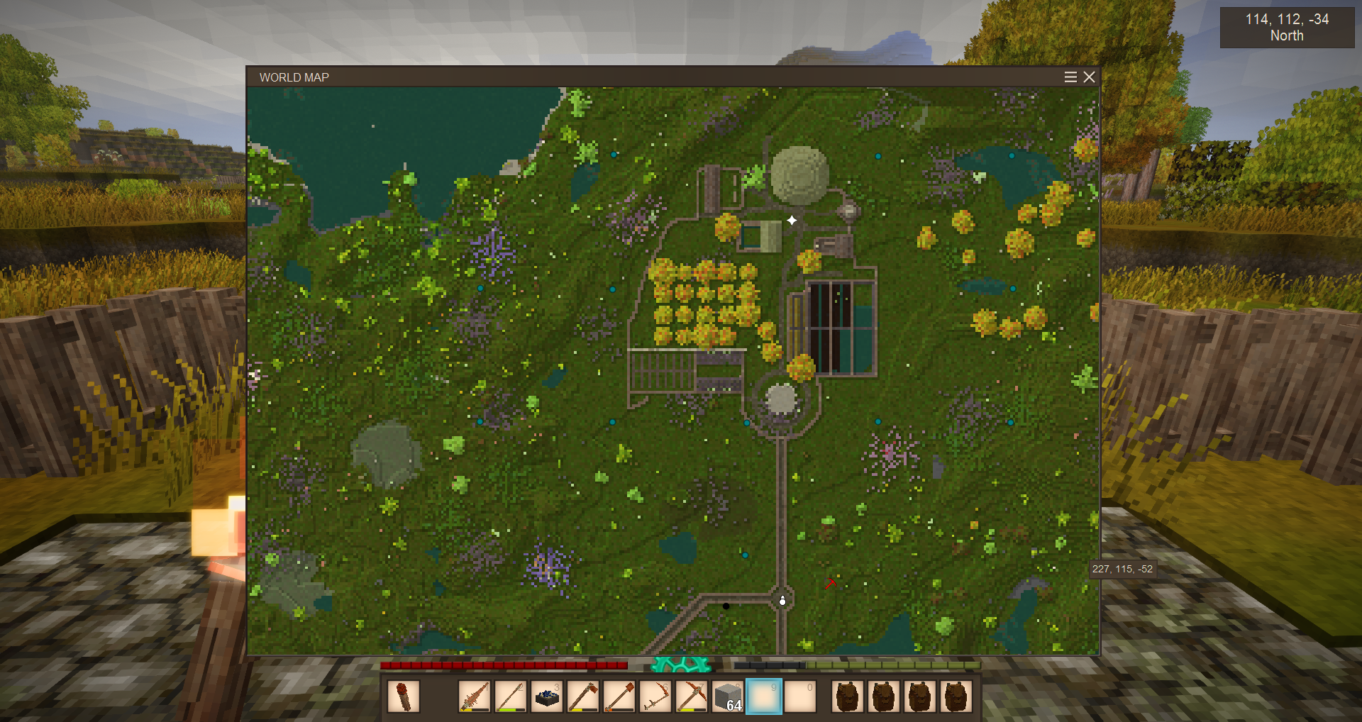 As winter approaches during my first year in Vintage story, I thought it would be nice to record my progress so far (at about 100 hours). For the record, I am playing single-player vanilla with all default settings except for 30-day months. These pictures were taken around September, 1386. This is my first real Vintage Story world, while I have owned the game for several years and played a few worlds for a few hours each, I've never made it beyond the stone age until now. This is my little homestead, Stellar's Jay. Stellar's Jay sits in a little meadow not far from the spawn point. I initially chose this settlement because of a burial mound I discovered in my first few days. Sadly, no pictures of it's original state. I've since uncovered the mound, but I'm still not sure what I want to do with it. The roundhouse was my first major build, and everything else has been built around it. Just behind it, you can see my little cave home that I lived in for my first few weeks. My windmill. Facing west, as that is the way the wind blows. My chicken coop. The chickens are currently in their fourth generation. I've not a lot of grain, so they're probably going to go pretty hungry over winter! Sheepfold, currently infested with drifters. Tannery. I put a lot of barrels in, as I prefer to make my leather in large batches rather than a bit at a time. To the south of the chicken coop is my farm, very much a work in progress. I've been expanding plot by plot as I get enough terra preta to do so. Currently it is enough to feed me, but I've built it with feeding animals in mind. My apiary field with a reed patch. I initially thought to use tables to act as fake beehive legs, but then hit upon microchiselling a proper base. Unfortunately I've not done much caving, so these are the only two pieces of aged planks I've found so far. And finally, the map of the area. The road to the southwest leads to the nearest trader, and the one to the south is a work-in-progress road to a commodities trader and the limestone quarry. Planned expansions are a woodshed to the west of the tannery, a helvehammer workshop north of the windmill, and possibly a boar pen east of the chicken coop. Interior of the roundhouse will be in the next post.
