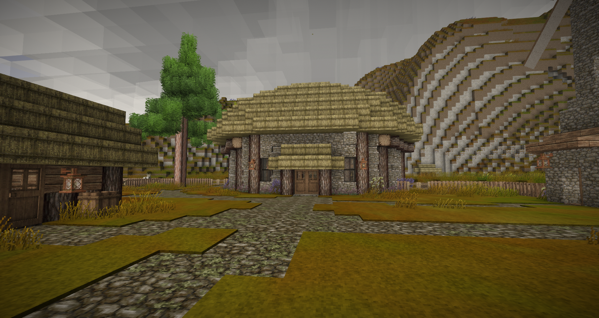 As mentioned, the roundhouse is the centre of my settlement, and there's quite a lot going on inside! Edit: Links because forums do not like imgurs imbeds The view from the door. Cosy! To the right of the door is my cooking area. I wanted a proper stove so I used microblocks. The barrel collects all my honey and the blue tile is my ‘sink’ with my water source inside. Still trying to figure out a good design for a tap. My smithing area. Everything I need to make my basic tools. I’m still trying to properly enter the bronze age. I have yet to find a sphalerite vein, all the bismuth bronze there is what I could get from panning. To the left is the staircase to the loft. Hidden storage chests beneath the fake shelves for my to-be-fired clay and my glass. Skipping over the stairs and cellar for the moment… My little living area, with my bed and some of my favourite seashells. On my to do list is a display case and chiselling out the shelf in order to hide chests beneath to store the rest of my seashells, which are starting to pile up in my storage area… Storage area. Pretty simple, although I do have overflow storage in the loft above. The doors to the right lead to my little panning area, walled in for when temporal storms hit. View of the door. View of the loft. Not much up here, yet, except for bones, feathers and excess stone, but I wanted room to expand. My root cellar. The pillars need to be changed to polished stone bricks, but for now it is functional. I have no idea how much food I would need for winter, but this is all I’ve managed to get. Meat and veggie stews are on the right, fruit porridge is on the left, and my jams are on the left. Most of the vessels and all of the barrels are empty. And as a little bonus, here's my first little house, and a screenshot back from one of my first few nights. Hope you enjoyed!