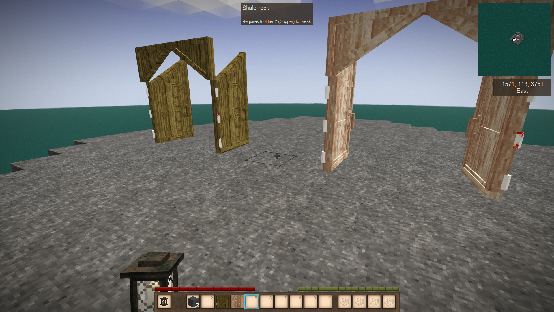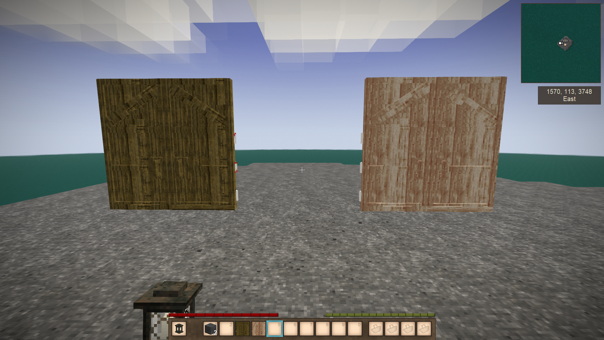 I suggest we have an all-in-one door where you place it down with the center block being the middle of the two doors and they swing open like two doors next to each other. This door being all-in-one should make it easier to code in and place down than having two 1-1/2 size doors that connect. Plus, it being a single block you could also make the door more rounded at the top with the corners being part of a frame adding more detail to this door.
