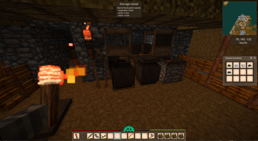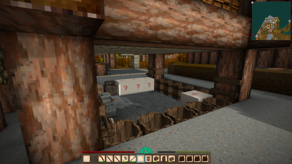 5. Hello! When moving my server from 1.20-rc.6 (the version the world was started on) to 1.20.1, I seem to have made a mistake where I copied the rc.6 content mods over to 1.20.1 accidentally, when I copied over the small handful of 3rd party mods (I simply ran `cp server-old/Mods/* server/Mods/` without thinking, I believe). Upon connecting to the server in this state, the entire world was filled with questionmark blocks, and player data was read as semi-invalid as I was sent back into character creation (but with all of the options I had actually used in character creation selected). I ended up upgrading to 1.20.3 with the proper content mods, and this seems to have MOSTLY fixed the issue... except, now all of our storage in a certain area either displays as questionmark blocks, or empty blocks with the name of "Unknown". Our storage racks are also empty, and any signs that have been placed in the affected area are empty as well (though this is comparatively minor, since signs can be re-written). The only reason I can think of for some being broken and others not, is that the ones that ARE broken are closer to where I was when I connected when things were more generally broken. I unfortunately did not think to make a backup as I didn't think there was a way for a minor version move to be messed up so spectacularly. Worth noting too that I have no mods that should relate to storage functionality, I have BetterHewnFenceGate, ConnectedStairs, PlayerCorpse, ProspectTogether, and th3essentials, and that's it. Some pictures of the problem: ^ The questionmark blocks here are supposed to be vessels. You'll also notice the tool racks are empty, even though they previously I believe contained our one pickaxe and saw ^ In this photo they're supposed to be crates, and you'll also notice the blank sign ^ Working vessels, just a little ways away from where the broken storage is I also didn't manage to get a photo of it, but our reed baskets in the affected area are what show up as empty but highlightable blocks with the name "Unknown"