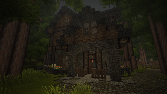 This is a little home I built in 1.14, Its completely on survival, except for using spectator mode to find ruins. Its nothing super fancy and some blocks are not yet chiseled, but, I still wanted to share it. (Disclaimer: The railing idea was not mine.)