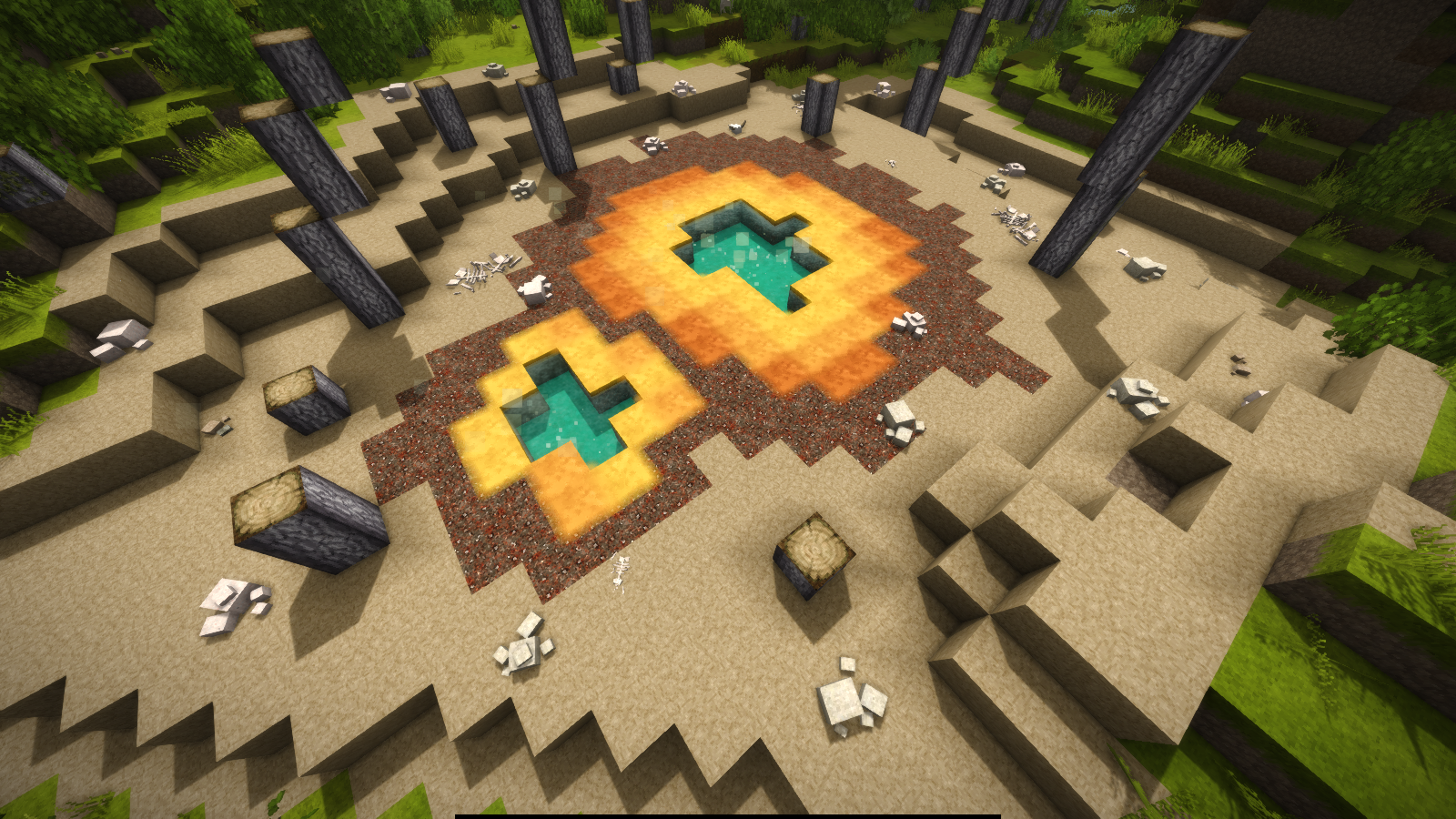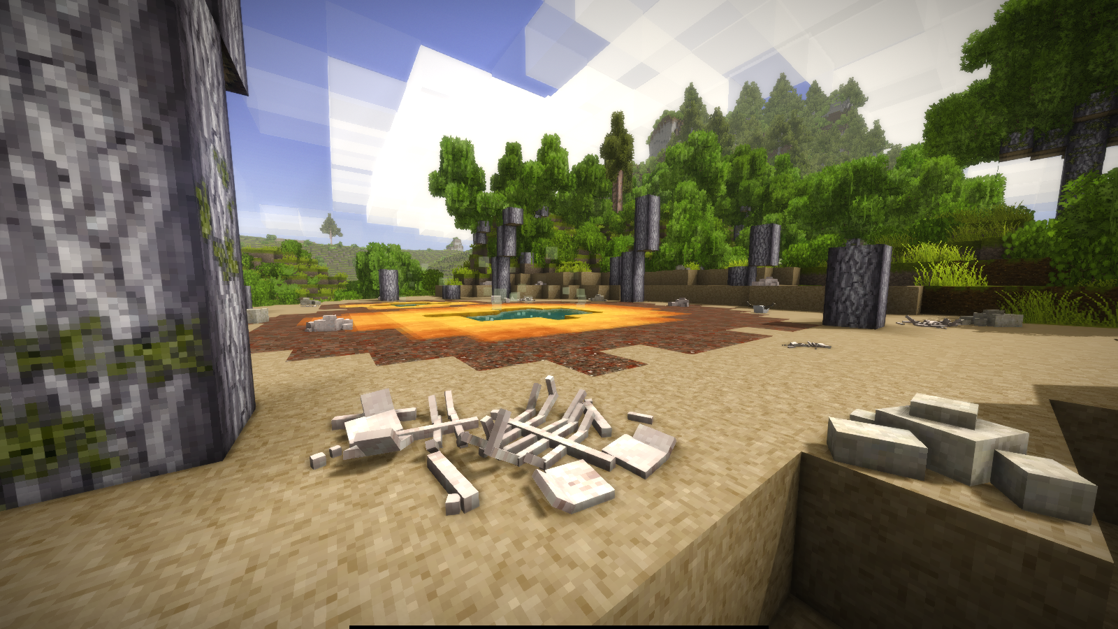 It would be more realistic if the vegetation in around 5-10 blocks around geologic activity sites would be dead, the water would be boiling and all the dirt in the area would be replaced with dry dirt and cowered with rock salt, limestone boulders and a little animal hulks like in the example photos. Don't you think it would be more suggestive and realistic?