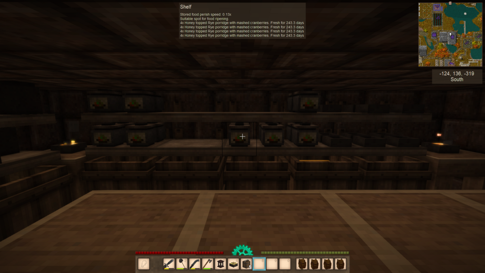 As much as I love this mod, especially for a server with 10+ people, I've been running into a massive problem. Ever since we installed this mod on the server, the spoilage rate calculations seem break really badly whenever a crock or other container full of food is picked up. It's making stockpiling food for winter much more difficult. A sealed, cellar-stored crock with 240+ days shelf life (stored about a month before that, 30 day months) will nearly halfway spoil the moment it's picked up as if it's fast-forwarding, rather than keeping the existing duration and speeding up. Did some testing without the mod, and it doesn't happen either vanilla or with the full suite of other mods we have. This also happens to pies, bread, or really anything stored in ground storage or on shelves that can spoil.