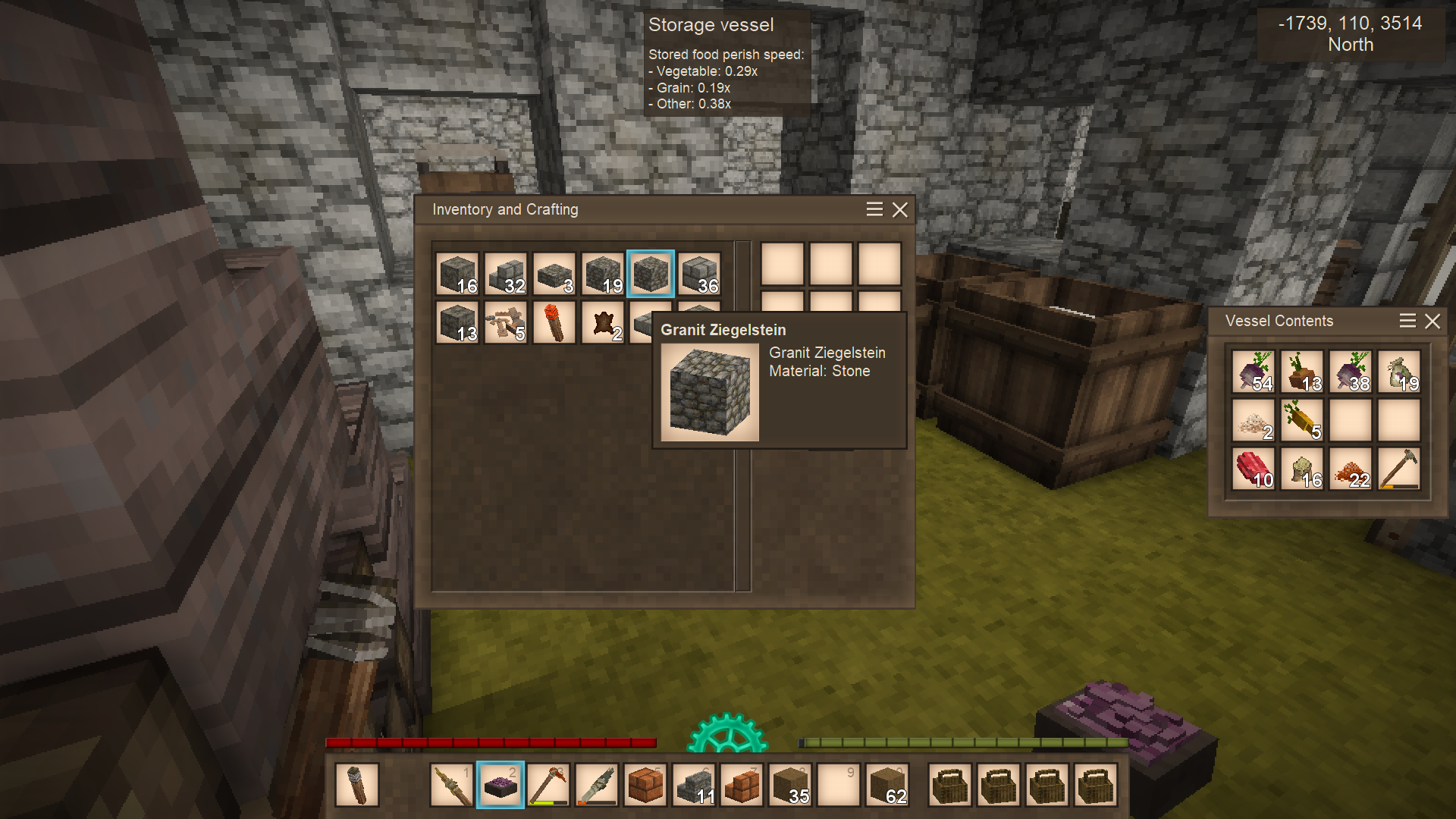 11. when mining a ruin i got a block of "granite cobblestone" that was written in German? it wouldn't stack with the other cobblestone I had. Cobblestone is to the left a slightly different texture.
