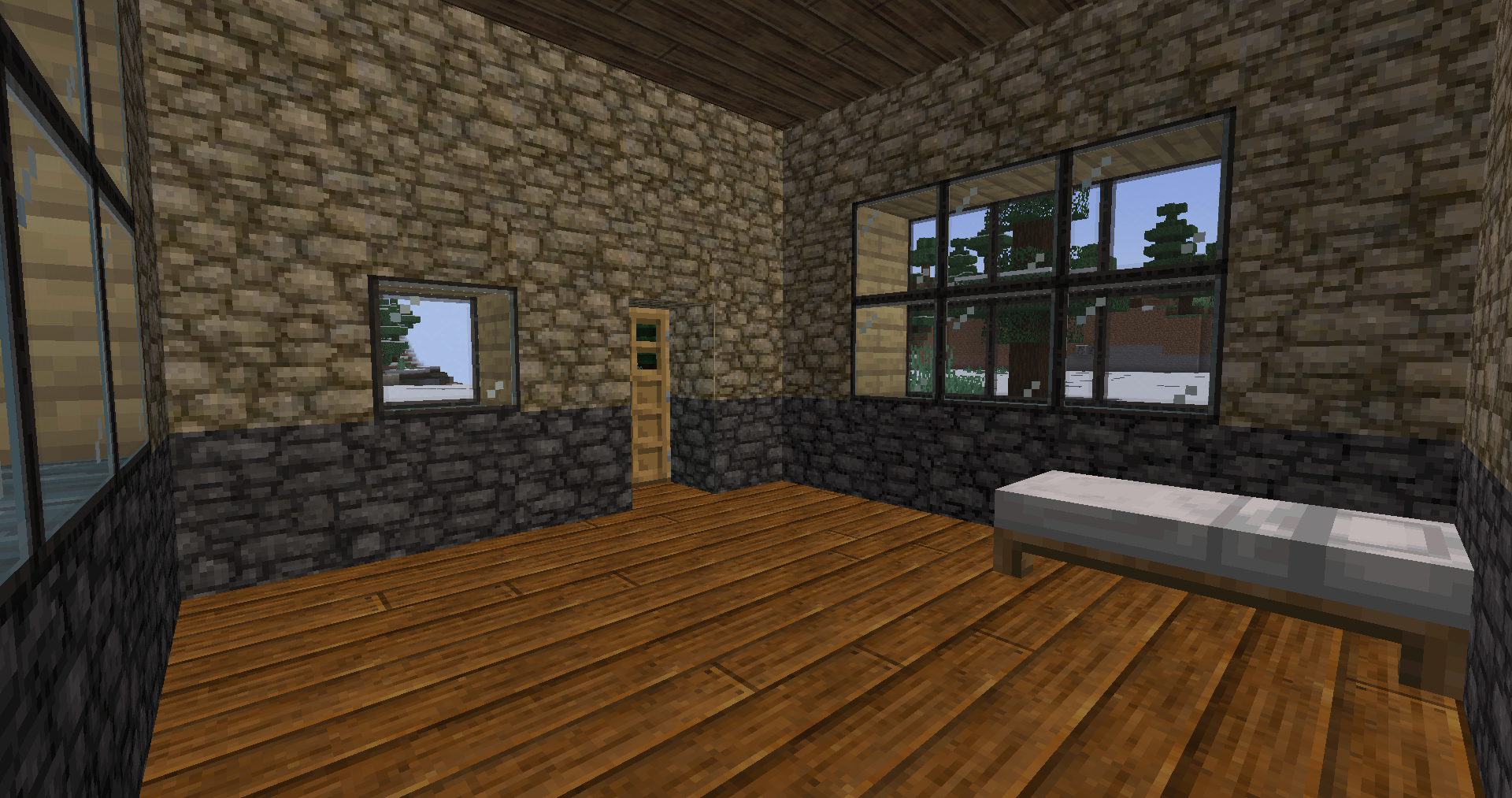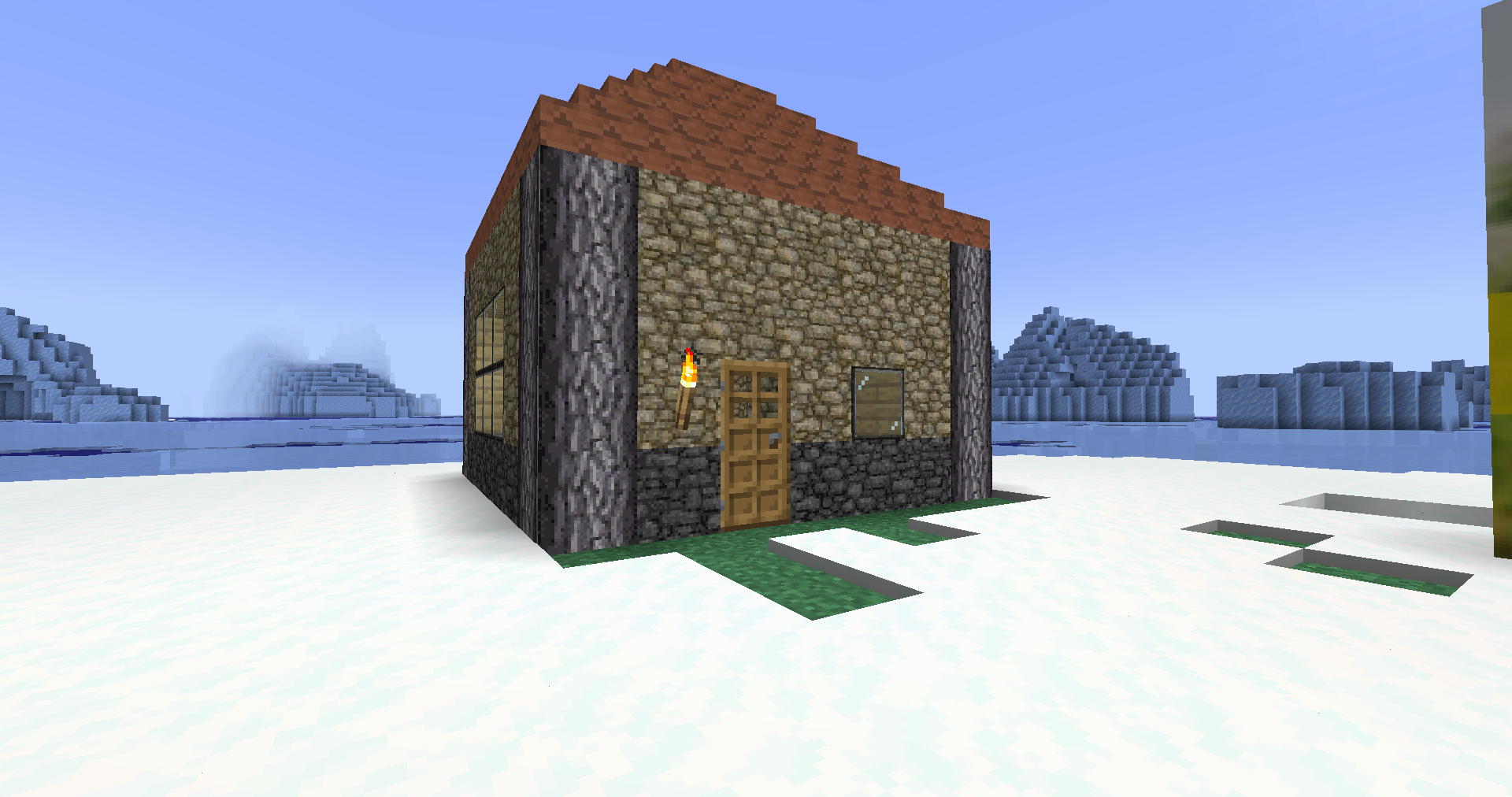 it's a minecraft mod that allows you to place down photos. i used pictures of block textures from vintage story and assembled them together using photoshop for each face of the building. the attached image is what the front of the house looks like. i didn't want anyone to think that it was just vintage story so i also left in the door and the bed.