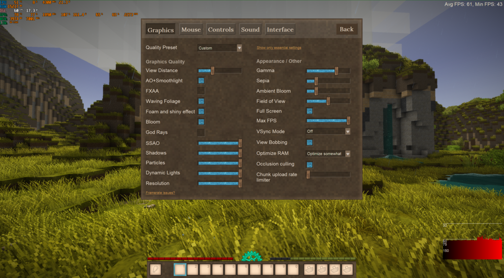Im not seeing any performance improvement. Maybe 2-3 FPS extra, tops. With version 1.18.6-rc.1 its 62-63 FPS looking at a medium sized rockformation With version 1.18.8 its 64-65 FPS I was kinda expecting a bit more of an uplift Also did you change the performance graph in the graphics menu or did my mods do that? I am not a fan