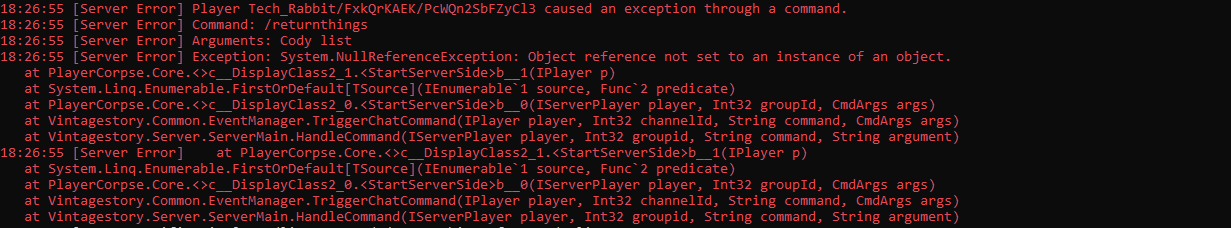 21. the returnthings command does not work and all corpses are " 's corpse":