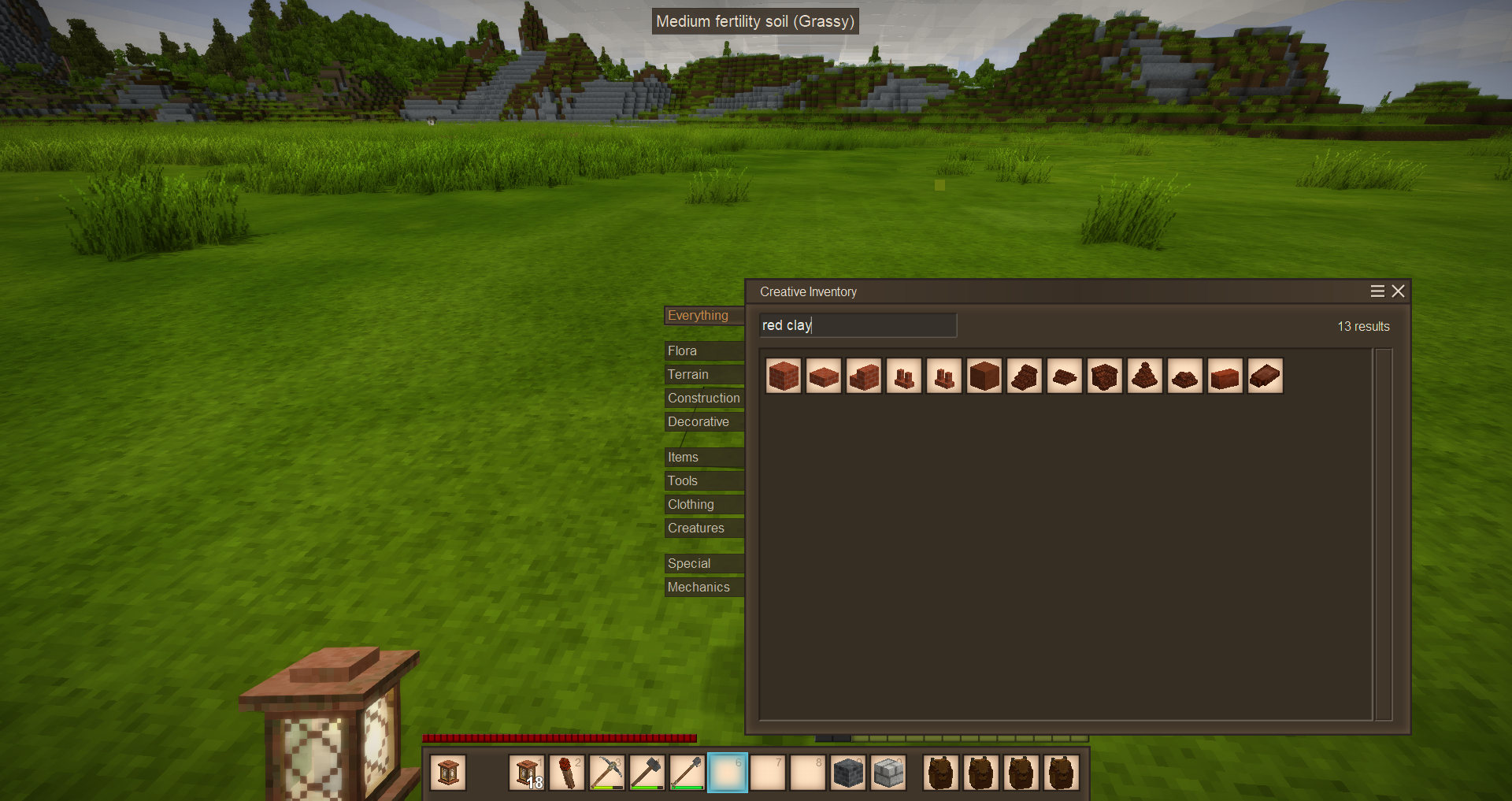 actual Brown and Red Clay itself is missing from World and even creative inventory while most items made from it can be crafted.-
