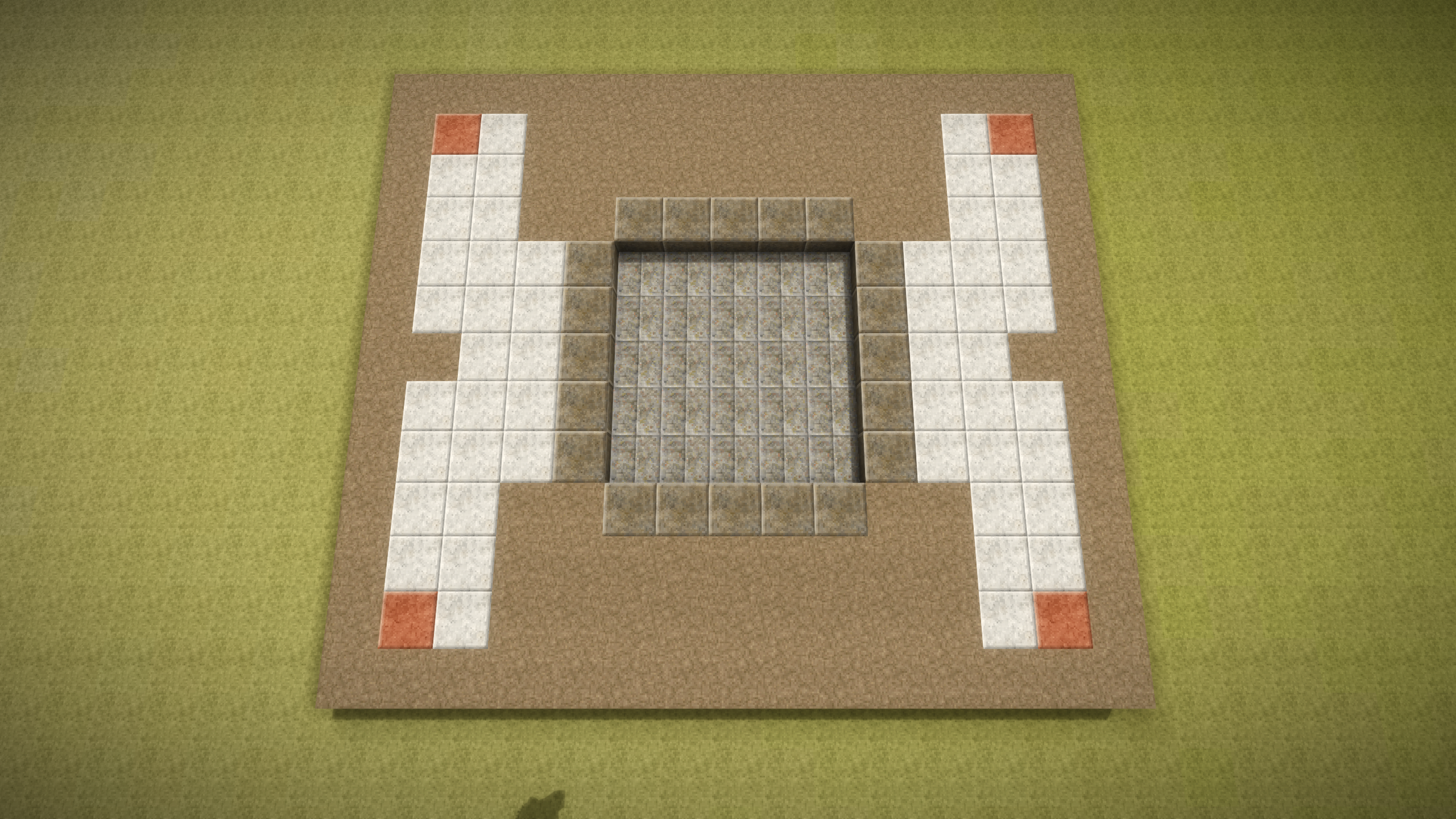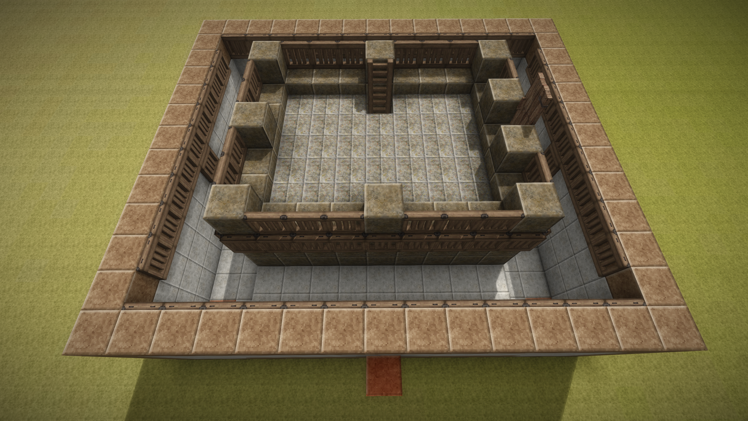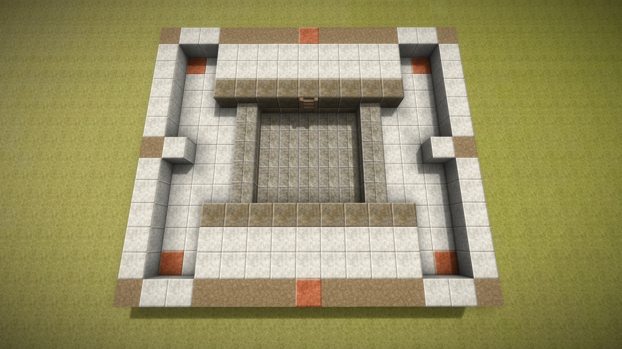 Well, seems I might have been wrong about the upload size, so here is the first batch of the build guide screenshots. To build this trap you will need to dig a 15 x 13 hole that is 5 blocks deep. If you don't care about the looks of the trap, you can dig a 13 x 11 hole that is 4 blocks deep instead and reduce the amount of blocks accordingly, however at the very center of the build there has to be a 5 x 5 block are that is 5 blocks deep! This is where the (slab) floor of the kill chamber will be, so it is important. For the purpose of the build guide screenshots I have chosen a bunch of polished blocks, solely to make it easier to count out the design while building it. As mentioned in the initial post you can pick whichever materials you like - it makes no difference to the functionality of the trap. The bright orange blocks indicate where to place the water sources. They do not have to be a different material - this is solely to make it clear where the water sources have to be placed. Once you have completed the second layer, you can place the water sources in the 4 corners of the build. The 4 water sources at the bottom should be placed before the 2 upper water sources, to ensure that the water streams behave. Note the ladder placement - you can pick either side, whichever fits with your preferences. By the third layer, you can chip into the pit walls and install the last two water sources, which then completes the water stream setup. On the 4th layer, I have installed 4 trunks for storage in the kill chambre. You can of course use chests if you prefer or if you don't want storage in the trap, replace the trunks / chests with solid blocks (that's the optional 8 extra blocks in the material listing). Note the additional two trap doors that are installed just above the stairs! These are important to coerce the Drifters into walking off the stair block quicker. The 5th layer is where you should reach the surface and where you should start placing trap doors all around the inside the pit.