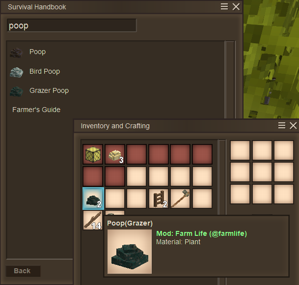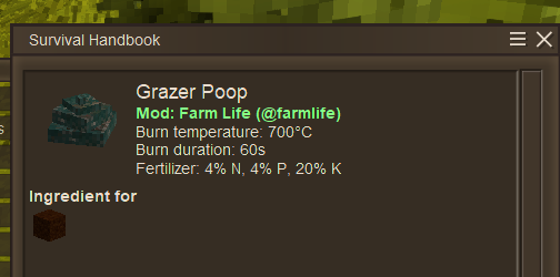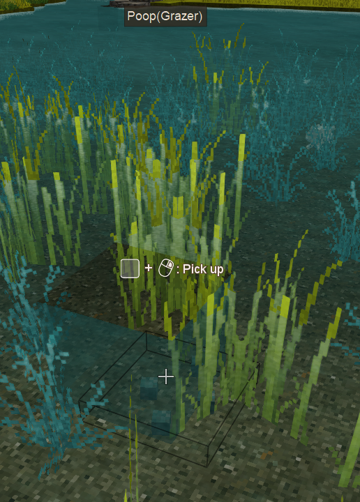 12. rabbits (and probably other animals) are pooping in the water; when you pick it up the block stays empty also, not sure if naming is off or something, but the tooltip on the poop (grazer) in the inventory shows nothing and in the handbook it's worded differently and shows the fertilizer amounts