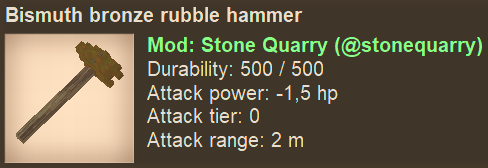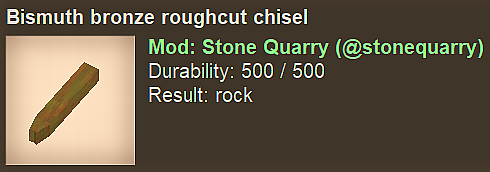 Well, sure. Here are details: Can't put on tool rack and doesn't work (RMB on rubble storage does nothing): Can't put on tool rack, there are animation and particles on RMB on slab, but it never ends and thus results in nothing: Same happens for this one: This is the only bismuth bronze tool that works: Tried all chisels on Small peridotite slab (contains: x4 Peridotite).