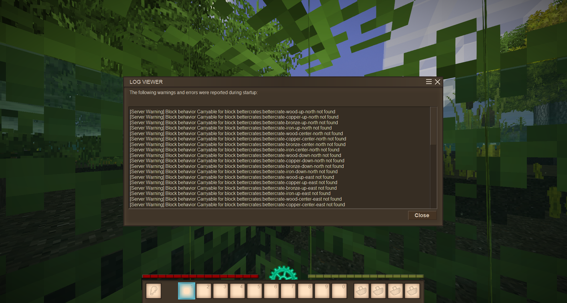 This is the "error" it shows. As I said before it's only on the server side, and it's only a warning. It still works just fine it's just going to do it every time you join into single player or start a server. I added the "Carryable" behavior in the crate block file. I don't see any other way to do it. Patching would be like patching the Carry Capacity patch that patches blocks to have the behavior... Unless there's a way in a patch inside my mod to say if Carry Capacity mod exists then patch the "Carryable" behavior in.