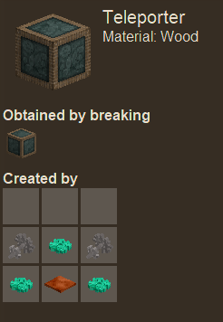 15. This is a very simple mod that makes the creative teleporter usable in survival. First it adds a crafting recipe: To break a teleporter you can right click with a padlock. You can download the 1.13 version of this mod from here: https://github.com/McJty/TpTools/releases/tag/0.2 You can download the 1.14 version of this mod from here: https://github.com/McJty/TpTools/releases/tag/0.3 Let me know what you think