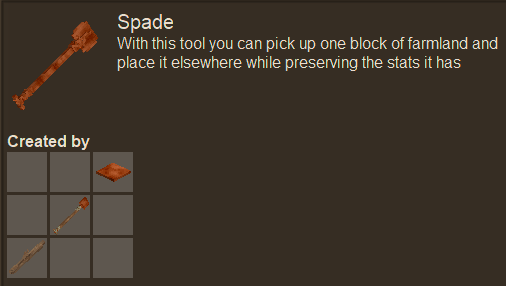 16. Hi all, this is my first ever mod for Vintage Story. As some of you may know I have made tons of mods on Minecraft already (The One Probe, Lost Cities, RFTools, Deep Resonance, MeeCreeps, ...). This mod was meant more as a learning experience. I had to learn a new language (C# vs Java) and a new modding API. So it's likely there are bugs in this mod. Please let me know if you find any. At this moment this mod adds two items. First there is the Spade: The spade has only one purpose: that's to move a single block of farmland while keeping its stats. There is already another mod that allows you to break farmland but I believe this is more balanced as it doesn't reset the stats but keeps them as they were. Also it can do only one farmland block at a time. The next item is the Seed Bag: The Seed Bag is a bag that can only hold seeds. It has room for 16 slots of seeds. To open the GUI you simply right click it while looking at the air. If you right click it over farmland it will plant the seeds in a 3x3 area. In addition if a Seed Bag is in your hotbar it will automatically collect seeds that you harvest (if there is room) The mod can be downloaded from: For 1.13: https://github.com/McJty/FancyTools/releases/tag/0.2 For 1.14: https://github.com/McJty/FancyTools/releases/tag/0.3 For 1.15: https://mods.vintagestory.at/show/mod/320#tab-files Comments are welcome! You can also look at the source code if you want. No promises on that though. This is my first mod so I may have made lots of mistakes there (I welcome constructive criticism). I have a twitter profile here: https://twitter.com/McJty And a discord server here: https://discord.gg/4wMtFKT Thanks