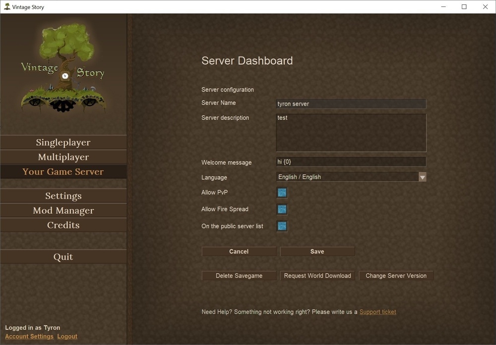Sounds like your Linux experimentation is going pretty well so far, that's great to see! Now to be a killjoy, I really wouldn't recommend starting it with sudo. If a hacker discovers a vulnerability in the VS server, you could be hosing your entire system. Instead, since the server's telling you which directory it wants, I'd recommend doing something like sudo mkdir /var/vintagestory/ sudo chown vintagestoryuseryoucreated /var/vintagestory Which will create the directory and give it wholly over to the vintage story user you created so it can do whatever it needs to with it. On Linux, if you haven't already run into this info yet, files and folders can be owned by a user and assigned to a user group, and permissions are split into groups of three. There are read, write, and execute permissions, and those can be given to the owner of the file, given to the group associated with the file, and blanket permissions for everyone else. The chown command changes the owner of a file or folder, and if you needed to edit permissions, you can use chmod like this: sudo chmod u+rwx /path/to/file sudo chmod g-wx /path/to/file sudo chmod o-rwx /path/to/file Which gives the user (owner) of the file all permissions, removes write and execute permissions from the associated user group, and removes all permissions from all others. In general on Linux, you'll typically want to avoid running things with sudo, particularly software that will stay running for a long time. It often works, but it takes absolutely all the safeties off. Many services will outright shut themselves down and refuse to run if they notice they're running as the root user.