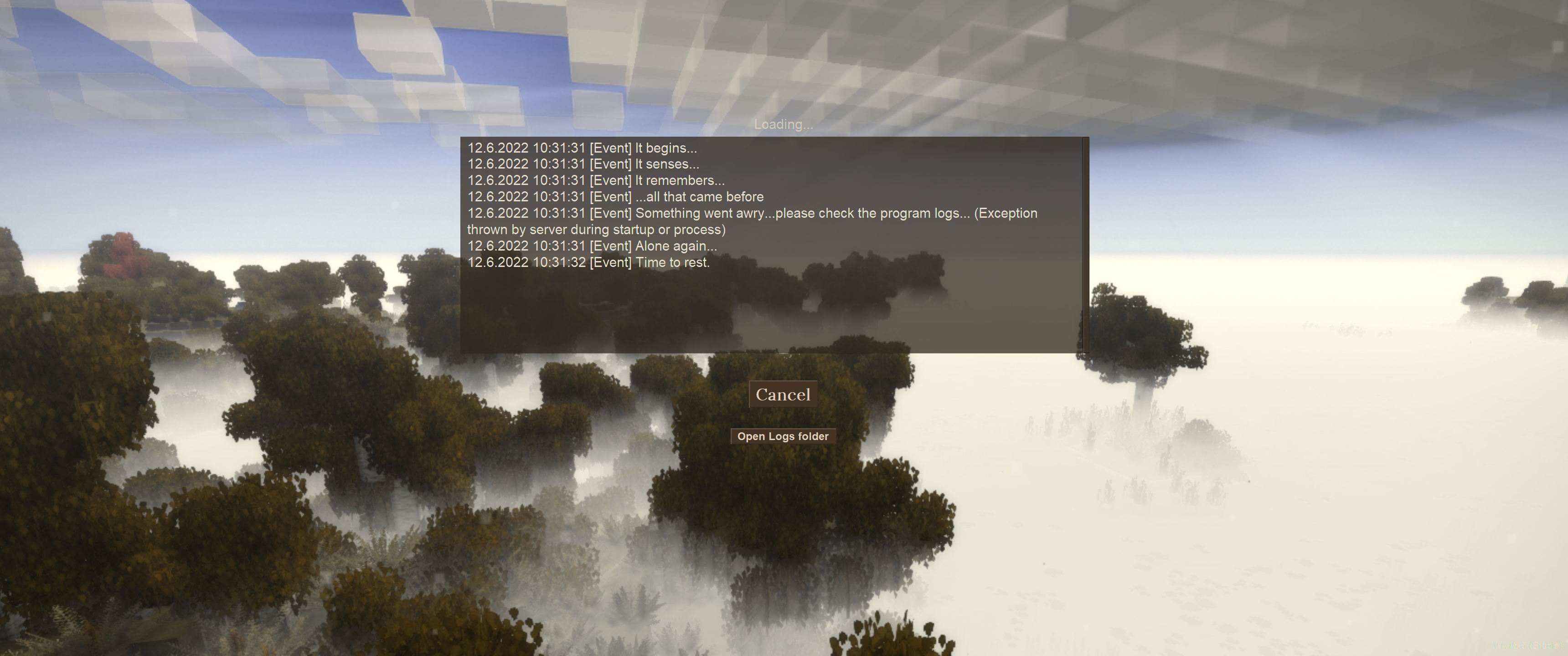 5. Played for about 9 hours. Tried to log in and got this weird error. World will not load or when going into repair mode. latest version when made and loading currently.