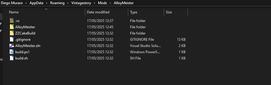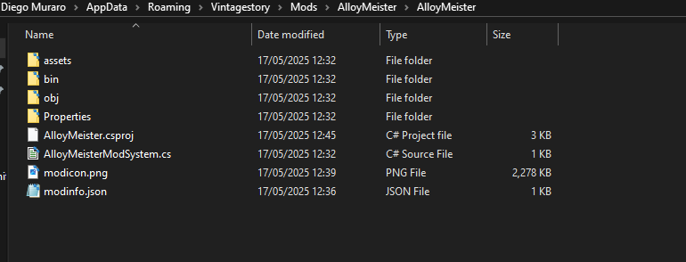 Hi, I started to create my own mod for vintage story a month ago. I followed the steps on the wiki: import the templates, update the templates, open visual studio, create a new project, select the vintage story base template, set the staging folder to vintagestory/Mods and then create the project. Now my mod folder looks like this:
