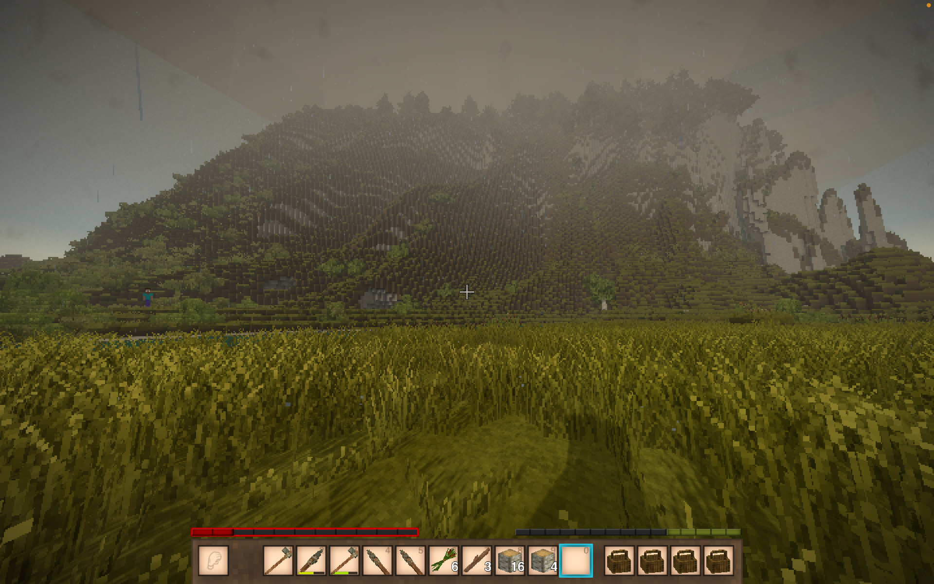 1. I loaded into another world, as usual. But things felt off, it was quiet and there were no animals, no boars, no deer, I even searched in a pond next to me and there wasn't even fish. I ignored it and got some berries and flint to make tools. I made some tools, got wood, and got some cattails. I now needed a base, so I started traveling. I swear I saw something out the corner of my eye, but I shrugged it off. I made it to the location and I saw it again, I quickly screen shotted my game and... captured this.