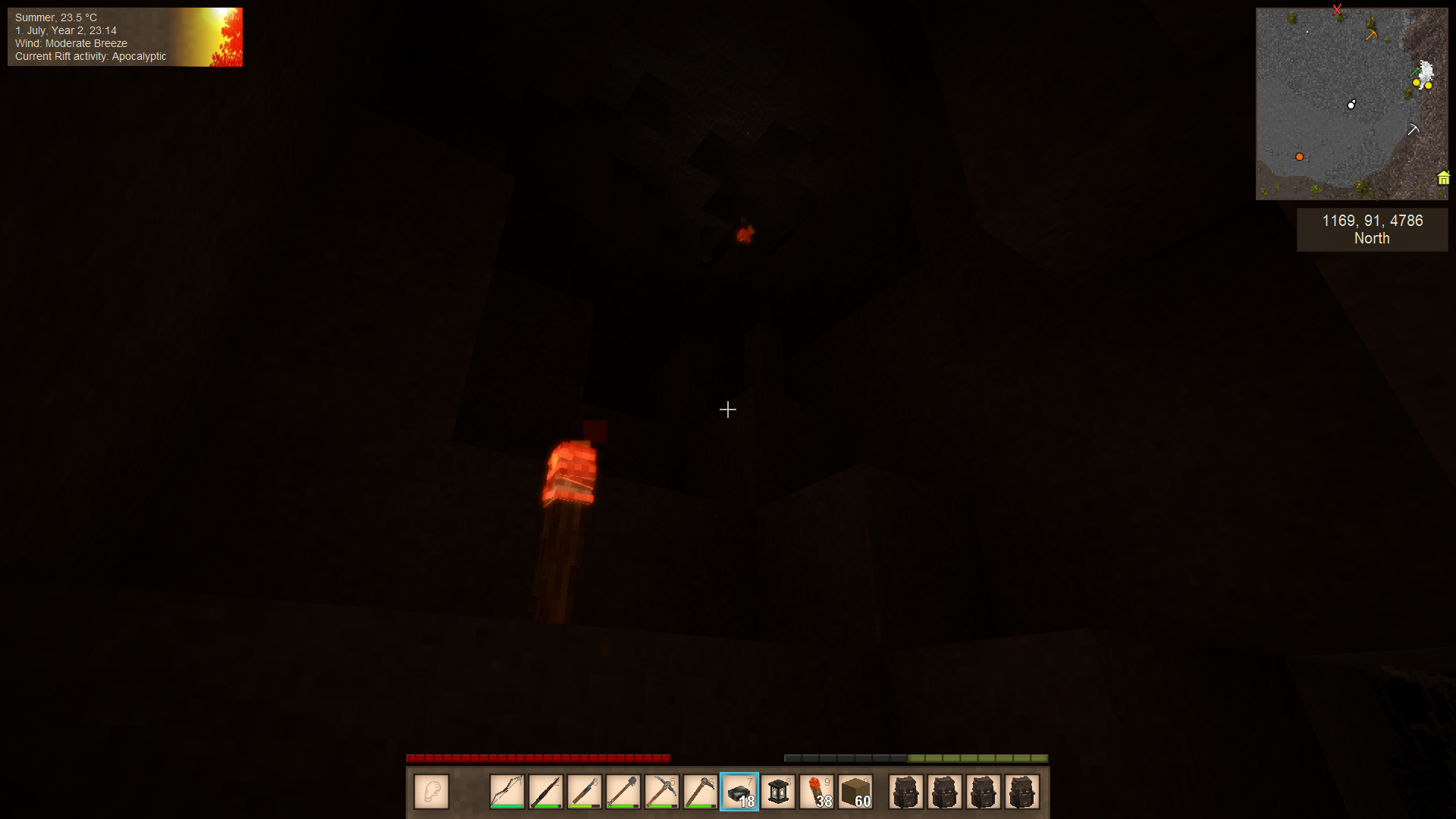 So my torches have stopped emitting light, it is making caving quite difficult, throwing one into a pit has no glow. I tried relighting the chunk with debug, it did nothing. Any suggestions?