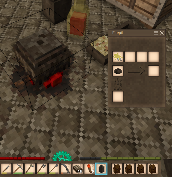I just can't do it . Any combination of right clicking + shift or control just toggles the firepit cooking menu open and closed. Bucket, jug, all the same. I can't pick up pitch glue either.. I had to remove the cooking pot from the fire and the pitch glue drops as an item that you can pick up. Seems like maybe they mucked something up recently?