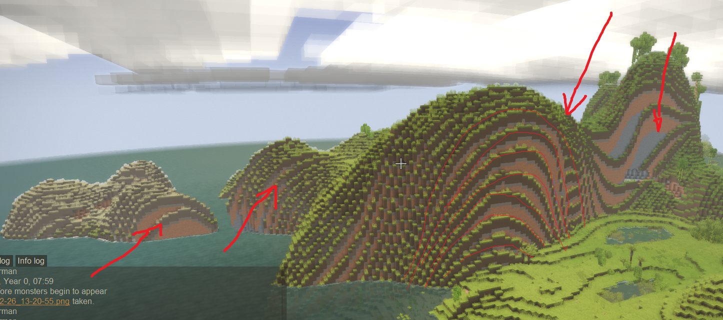I play new 1.18 VS. It has a lot of great new features. However it seems to me that terrain generator has a problem with regular mathematic shapes. Landscape sometimes looks like a mathematic charts/graphs, pure geometric shapes. And everything is covered by soil. It seems weird, like no real landscape. It seems to me that generator lacks some unevennes, irregularity, or so... What do you think? More screenshots: https://we.tl/t-EkFWVHbseQ -